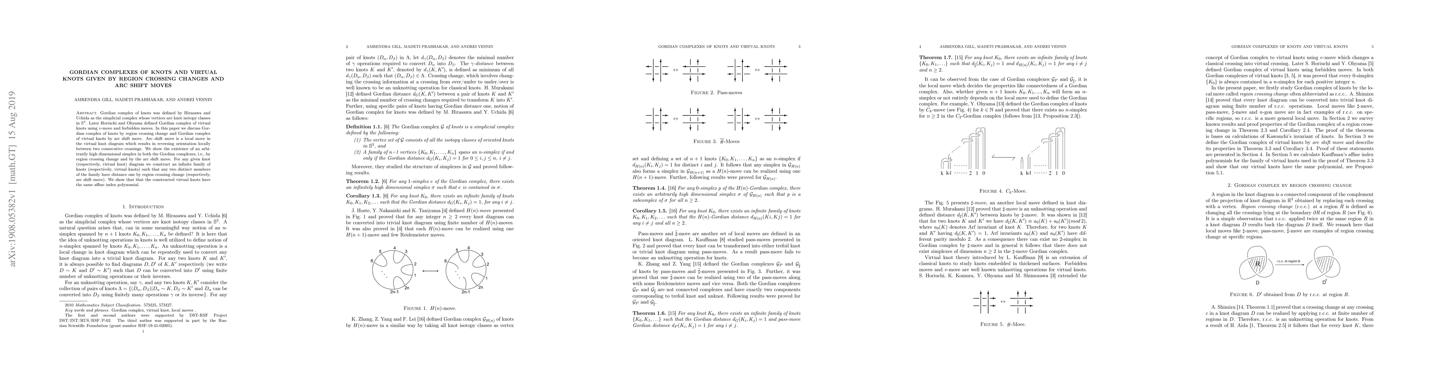 This paper explores the Gordian complexes of both classical knots and virtual knots, focusing on region crossing changes for classical knots and arc shift moves for virtual knots. It demonstrates the existence of high-dimensional simplices in these complexes and constructs infinite families of knots and virtual knots with specific distance properties.