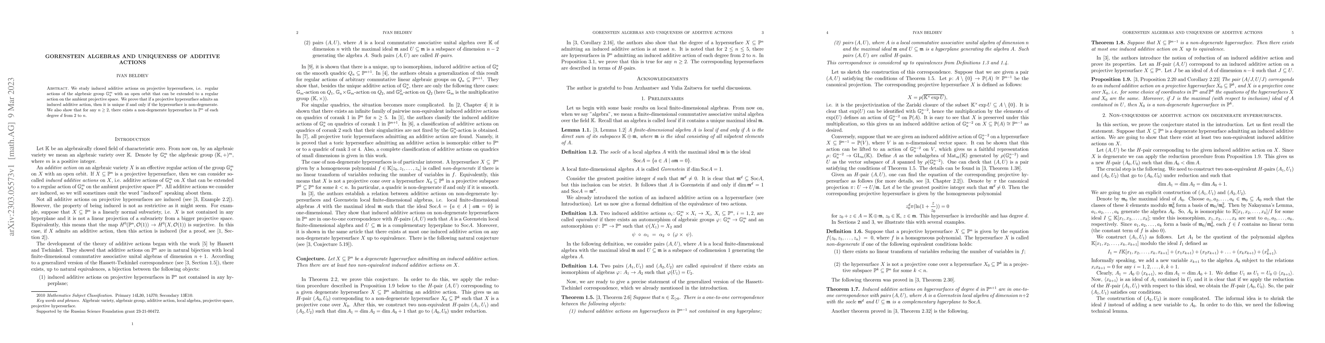 This paper investigates the uniqueness of induced additive actions on projective hypersurfaces, proving that such actions are unique if and only if the hypersurface is non-degenerate. It also demonstrates the existence of non-degenerate hypersurfaces in $\mathbb P^n$ for each degree from $2$ to $n$.