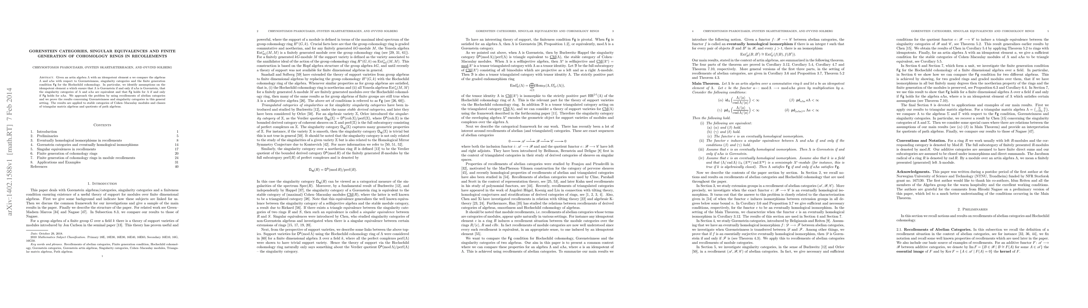 Given an artin algebra $\Lambda$ with an idempotent element $a$ we compare the algebras $\Lambda$ and $a\Lambda a$ with respect to Gorensteinness, singularity categories and the finite generation condition Fg for the Hochschild cohomology. In particular, we identify assumptions on the idempotent element $a$ which ensure that $\Lambda$ is Gorenstein if and only if $a\Lambda a$ is Gorenstein, that the singularity categories of $\Lambda$ and $a\Lambda a$ are equivalent and that Fg holds for $\Lambda$ if and only if Fg holds for $a\Lambda a$. We approach the problem by using recollements of abelian categories and we prove the results concerning Gorensteinness and singularity categories in this general setting. The results are applied to stable categories of Cohen-Macaulay modules and classes of triangular matrix algebras and quotients of path algebras.