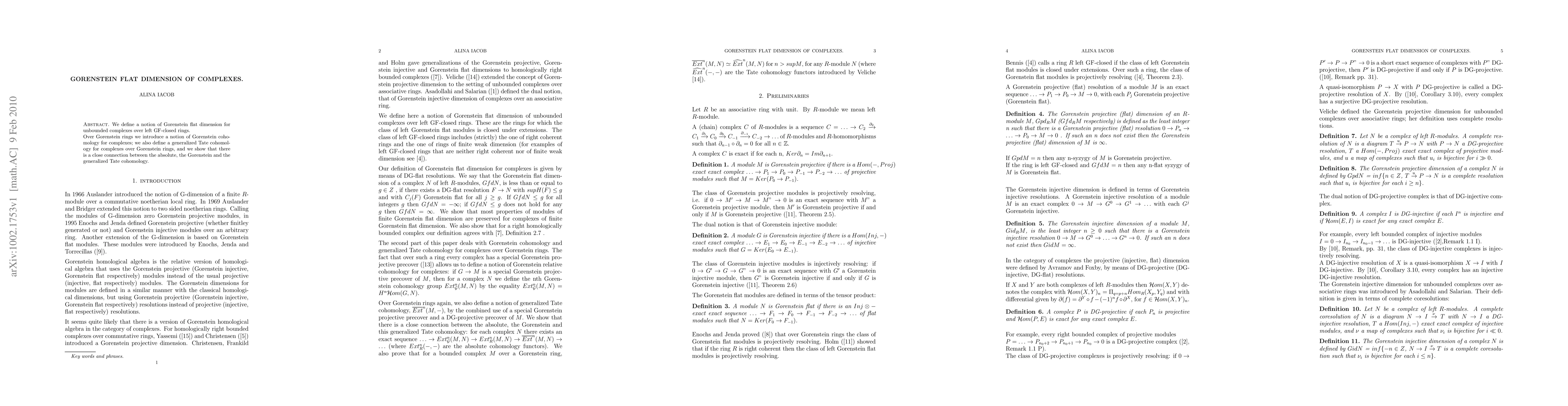 This paper introduces the concept of Gorenstein flat dimension for unbounded complexes over left GF-closed rings and explores its implications over Gorenstein rings, including the definition of Gorenstein cohomology and generalized Tate cohomology for complexes, and demonstrates a strong connection among these cohomological theories.