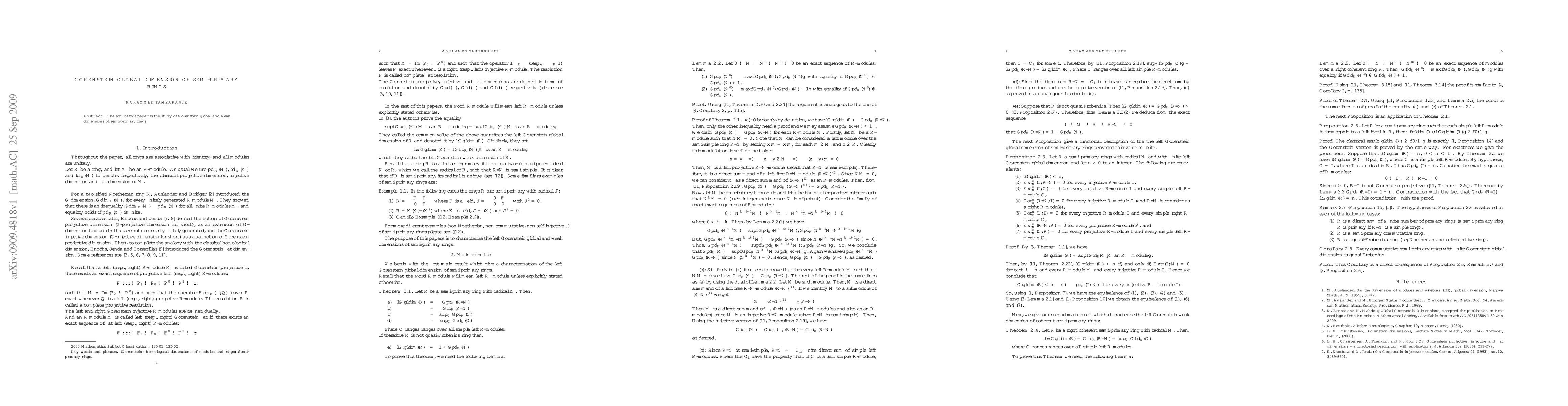 This research provides new insights into the properties of semi-primary rings and their relationship to Gorenstein dimensions.