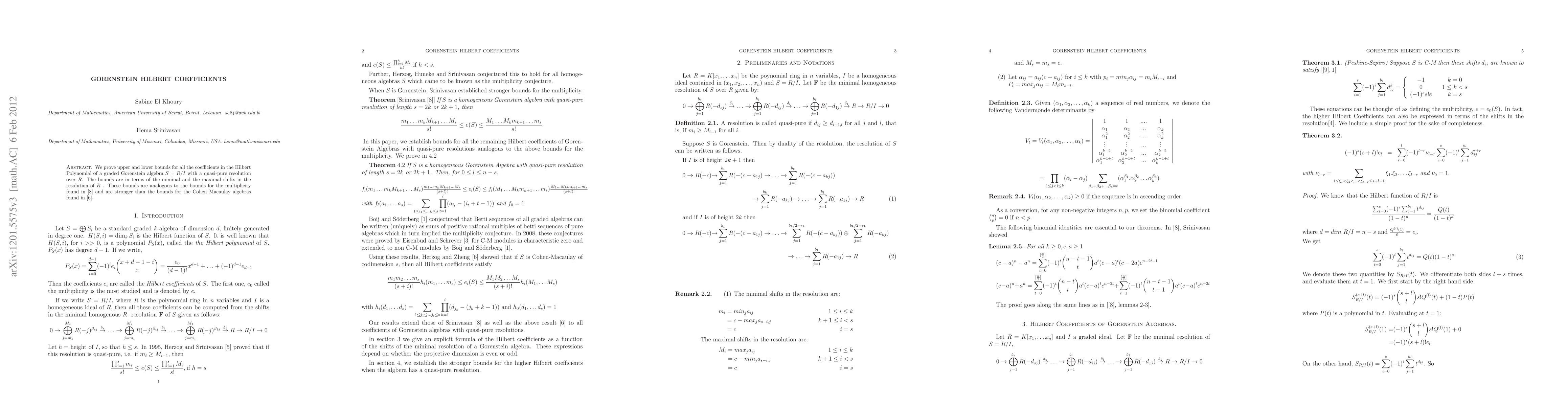 The paper establishes upper and lower bounds for the Hilbert Polynomial coefficients of Gorenstein algebras with quasi-pure resolutions, showing these bounds are stronger than those for Cohen-Macaulay algebras, and relate them to the minimal and maximal shifts in the resolution.