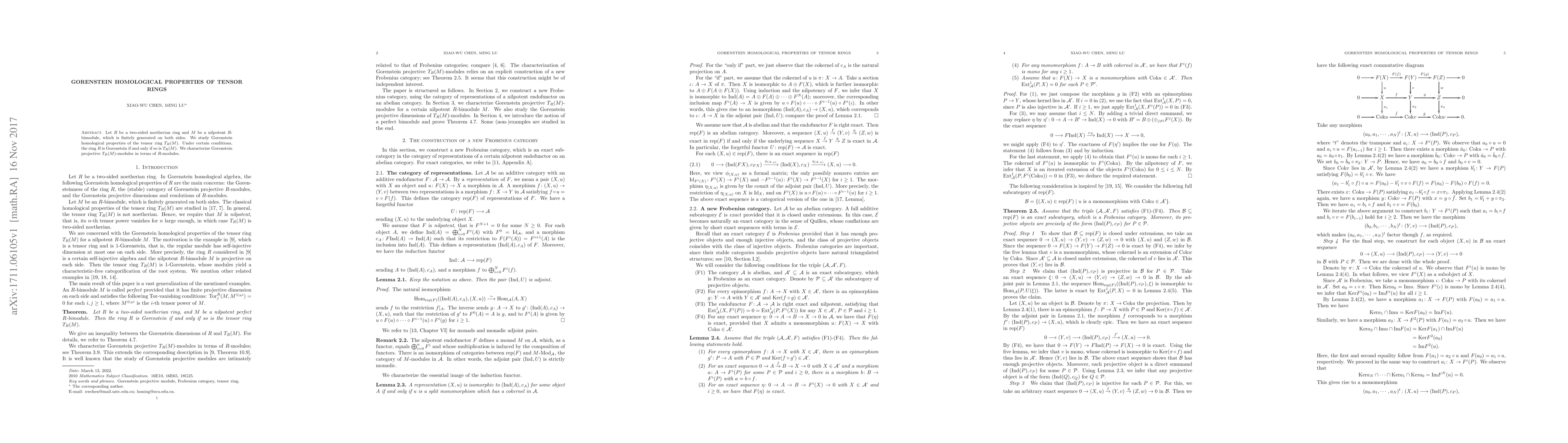 This paper investigates the Gorenstein homological properties of tensor rings $T_R(M)$ over a noetherian ring $R$ and a nilpotent $R$-bimodule $M$. It establishes that $R$ is Gorenstein if and only if $T_R(M)$ is Gorenstein under certain conditions, and it provides a characterization of Gorenstein projective $T_R(M)$-modules in terms of $R$-modules.