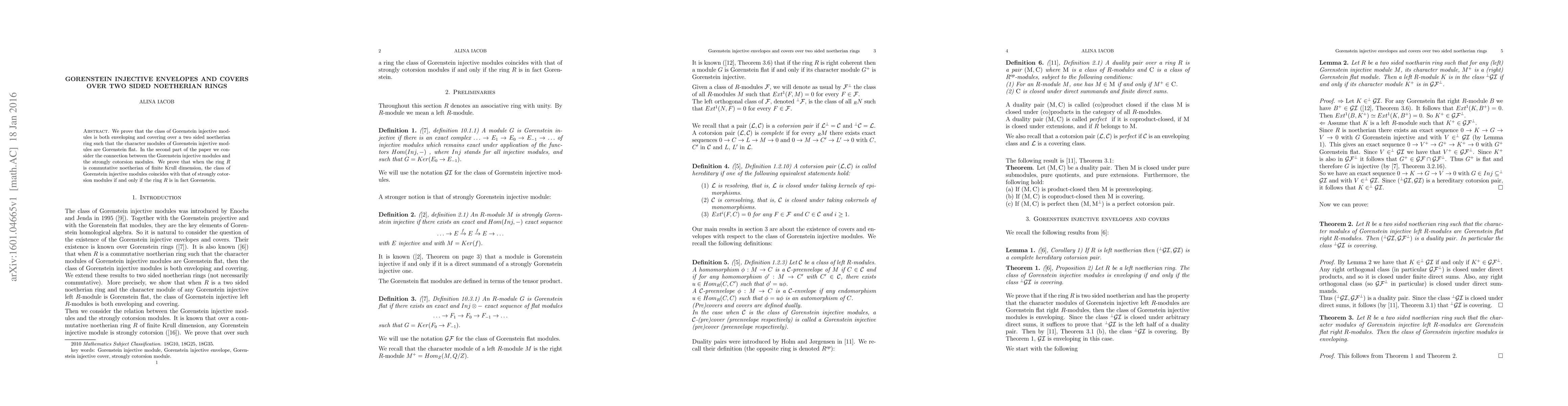 We prove that the class of Gorenstein injective modules is both enveloping and covering over a two sided noetherian ring such that the character modules of Gorenstein injective modules are Gorenstein flat. In the second part of the paper we consider the connection between the Gorenstein injective modules and the strongly cotorsion modules. We prove that when the ring R is commutative noetherian of finite Krull dimension, the class of Gorenstein injective modules coincides with that of strongly cotorsion modules if and only if the ring R is in fact Gorenstein.