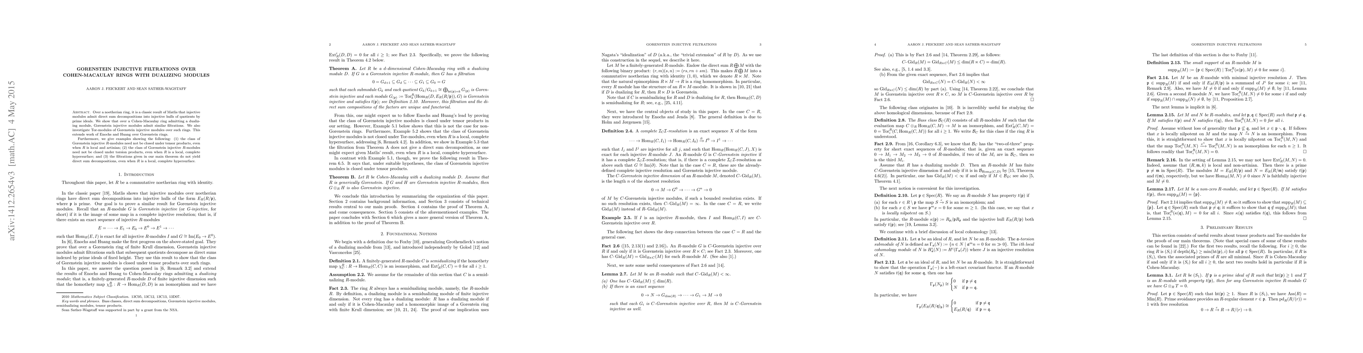 Over a noetherian ring, it is a classic result of Matlis that injective modules admit direct sum decompositions into injective hulls of quotients by prime ideals. We show that over a Cohen-Macaulay ring admitting a dualizing module, Gorenstein injective modules admit similar filtrations. We also investigate Tor-modules of Gorenstein injective modules over such rings. This extends work of Enochs and Huang over Gorenstein rings. Furthermore, we give examples showing the following: (1) the class of Gorenstein injective $R$-modules need not be closed under tensor products, even when $R$ is local and artinian; (2) the class of Gorenstein injective $R$-modules need not be closed under torsion products, even when $R$ is a local, complete hypersurface; and (3) the filtrations given in our main theorem do not yield direct sum decompositions, even when $R$ is a local, complete hypersurface.