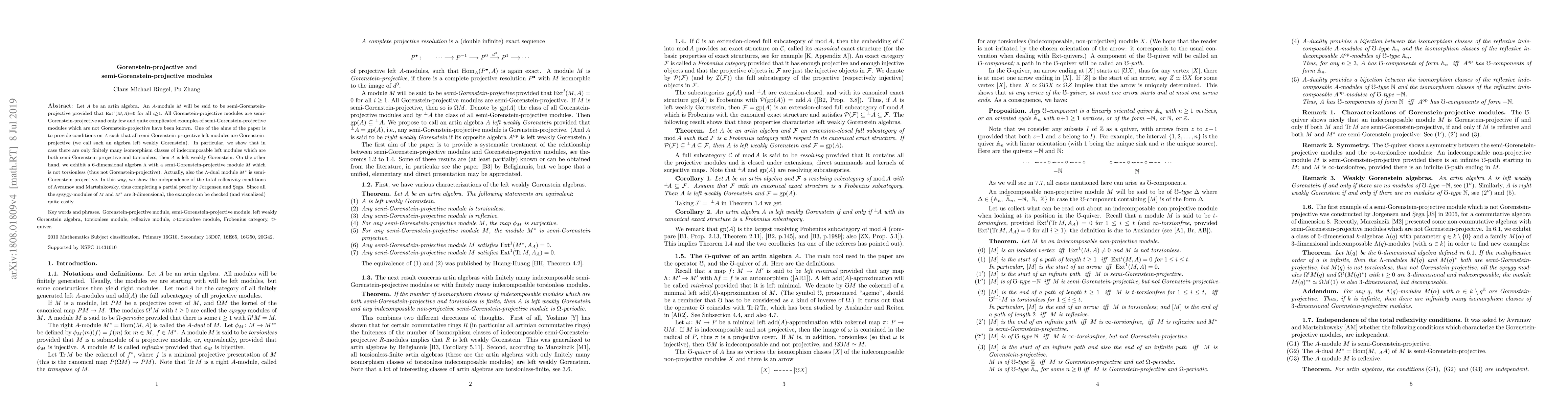 This paper investigates semi-Gorenstein-projective modules, showing that all such modules are Gorenstein-projective under certain conditions on algebra A (left weakly Gorenstein). It provides an example of a 6-dimensional algebra where a semi-Gorenstein-projective module exists that is not Gorenstein-projective, demonstrating the independence from total reflexivity conditions.