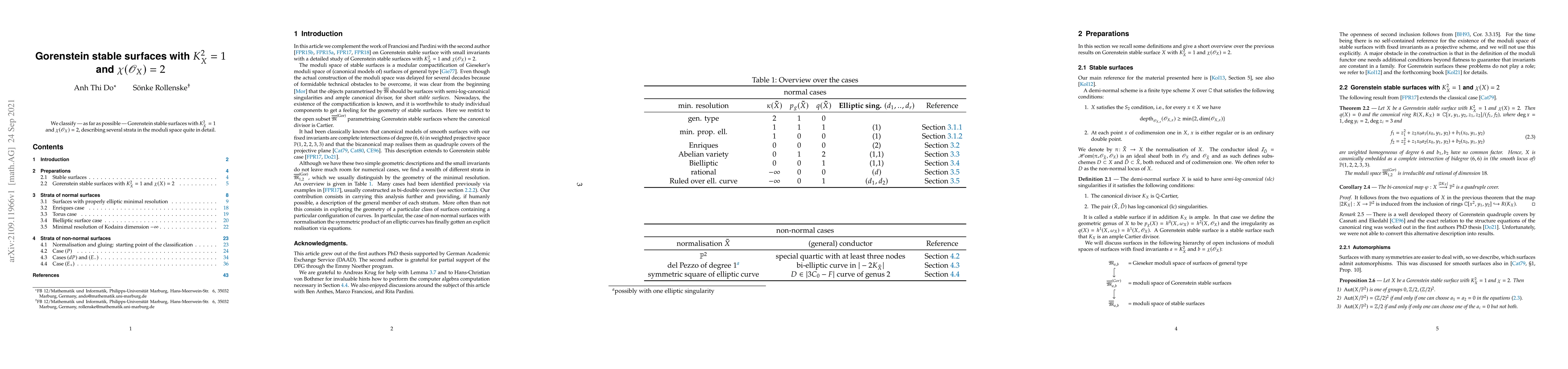 This paper classifies Gorenstein stable surfaces with $K_X^2 = 1$ and $\chi(\mathcal O_X) = 2$, detailing several strata within the moduli space. The study provides a comprehensive description of these surfaces.