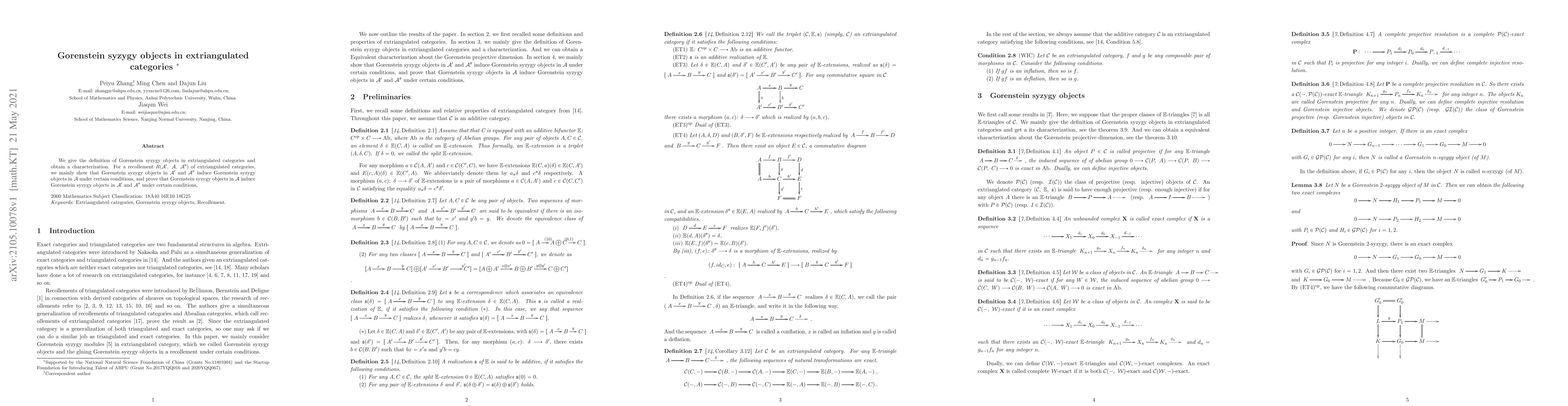 This paper defines Gorenstein syzygy objects in extriangulated categories and characterizes them. It also examines their behavior under recollement, showing they induce new Gorenstein syzygy objects under specific conditions.