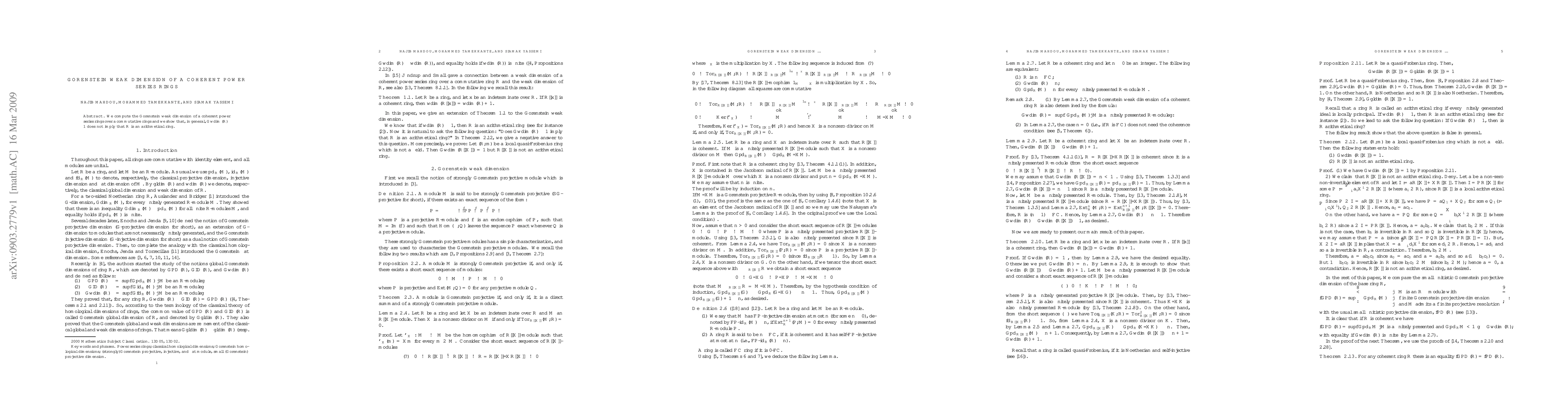 We compute the Gorenstein weak dimension of a coherent power series rings over a commutative rings and we show that, in general, $\gwd(R) \leq 1$ does not imply that $R$ is an arithmetical ring.