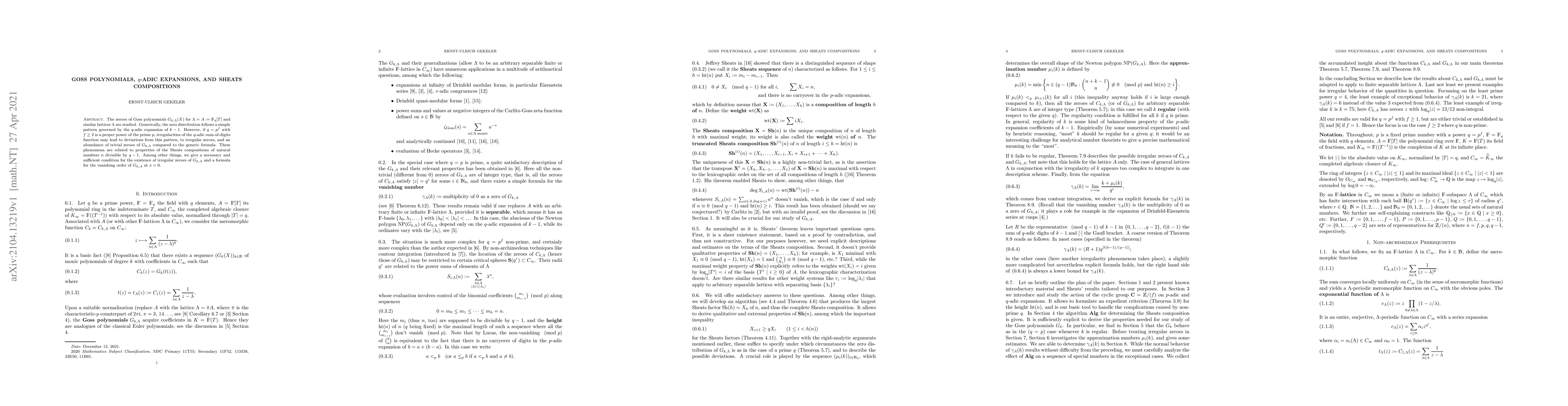 This paper explores the zeroes of Goss polynomials $G_{k, \Lambda}(X)$ and their distribution, which typically follows a pattern based on the $q$-adic expansion of $k-1$. It identifies deviations from this pattern when $q$ is a proper power of a prime, linked to irregularities in the $q$-adic sum-of-digits function and properties of Sheats compositions.