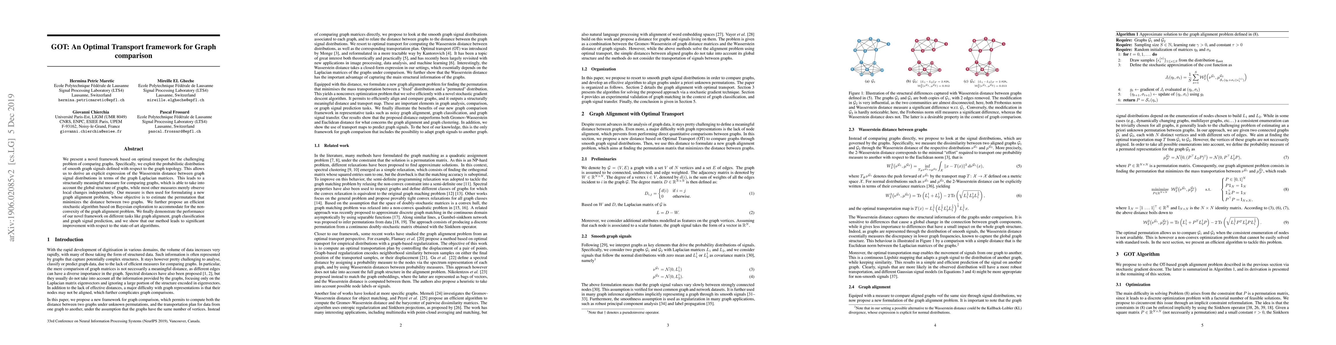 This research introduces GOT, a new graph comparison framework using optimal transport principles. It calculates a Wasserstein distance between graph signal distributions via Laplacian matrices, enabling global graph structure analysis. GOT also presents an efficient algorithm for graph alignment and demonstrates superior performance in tasks like graph alignment, classification, and signal prediction compared to existing methods.