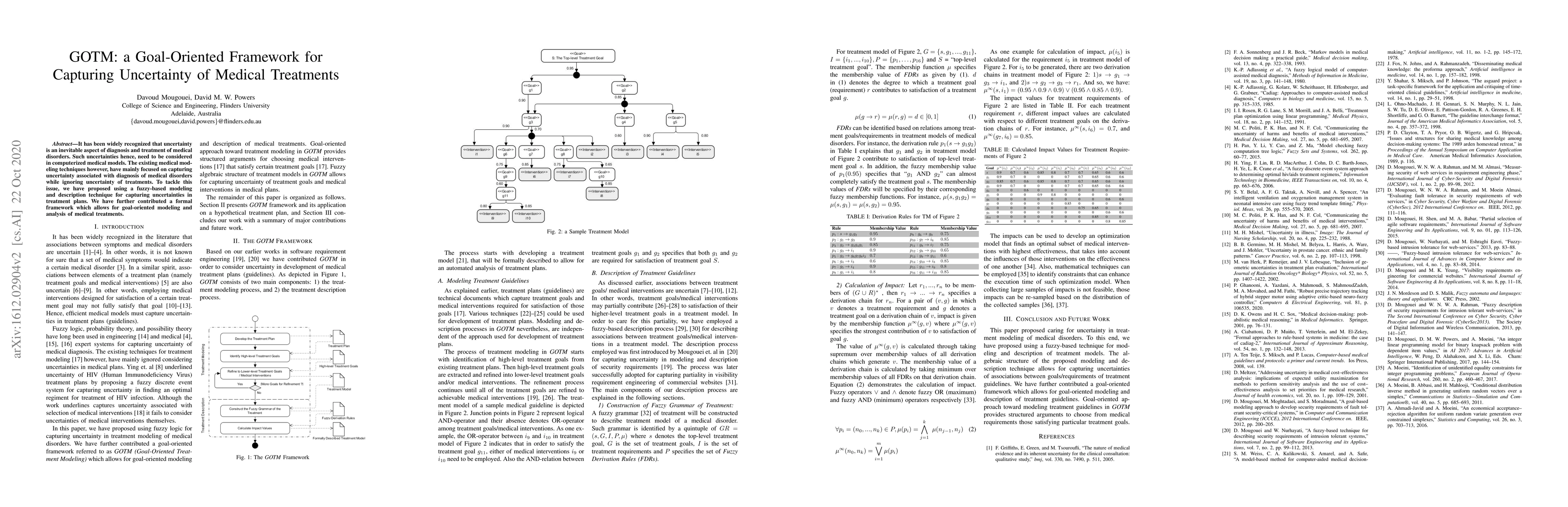 This paper proposes a goal-oriented framework, GOTM, to capture uncertainties in medical treatment plans using fuzzy-based modeling. It addresses the gap in existing medical models by focusing on treatment uncertainties, not just diagnostic uncertainties.