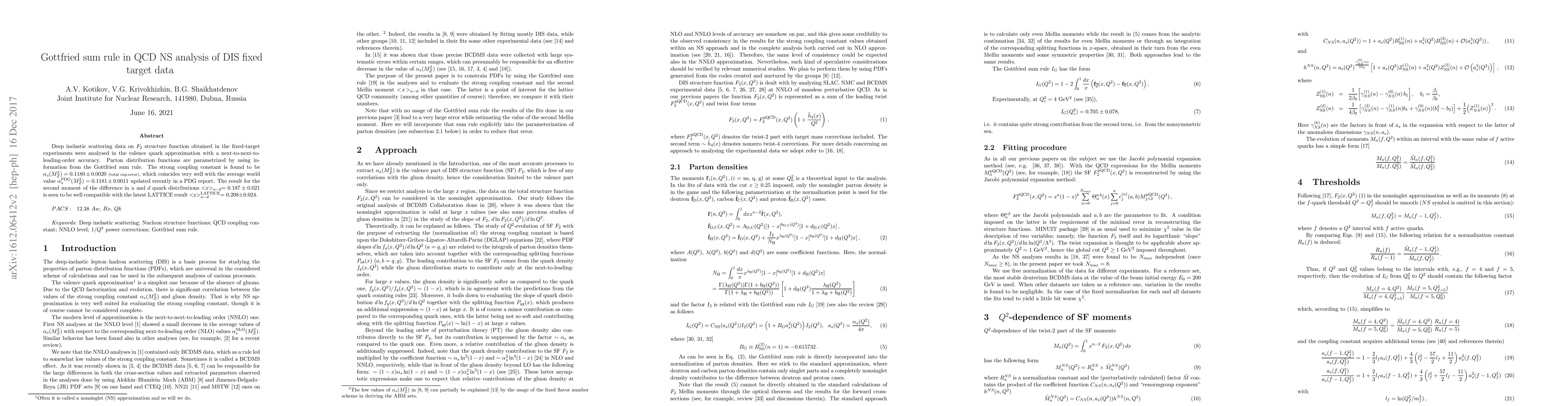 Deep inelastic scattering data on $F_2$ structure function obtained in the fixed-target experiments were analysed in the valence quark approximation with a next-to-next-to-leading-order accuracy. Parton distribution functions are parametrized by using information from the Gottfried sum rule. The strong coupling constant is found to be $\alpha_s(M_Z^2) = 0.1180 \pm 0.0020~\mbox(total\,exp.error)$, which coincides very well with the average world value $\alpha_s^{\rm PDG}(M_Z^2) = 0.1181 \pm 0.0013$ updated recently in a PDG report. The result for the second moment of the difference in $u$ and $d$ quark distributions $<\!\!x\!\!>_{u-d}=0.187 \pm 0.021$ is seen to be well compatible with the latest LATTICE result $<\!\!x\!\!>_{u-d}^{\rm LATTICE}=0.208 \pm 0.024$