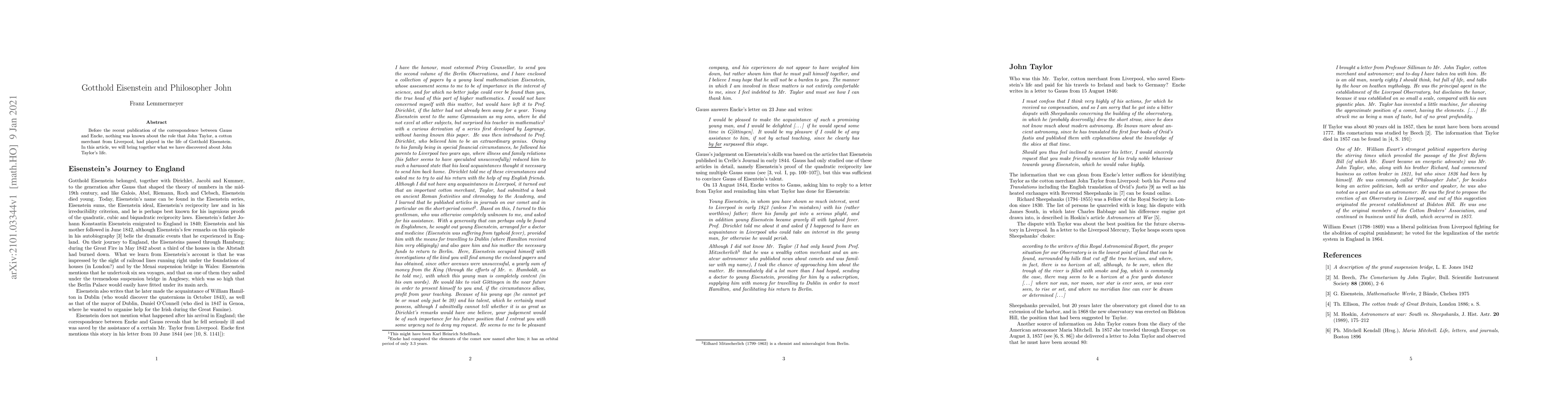 Before the recent publication of the correspondence between Gauss and Encke, nothing was known about the role that John Taylor, a cotton merchant from Liverpool, had played in the life of Gotthold Eisenstein. In this article, we will bring together what we have discovered about John Taylor's life.