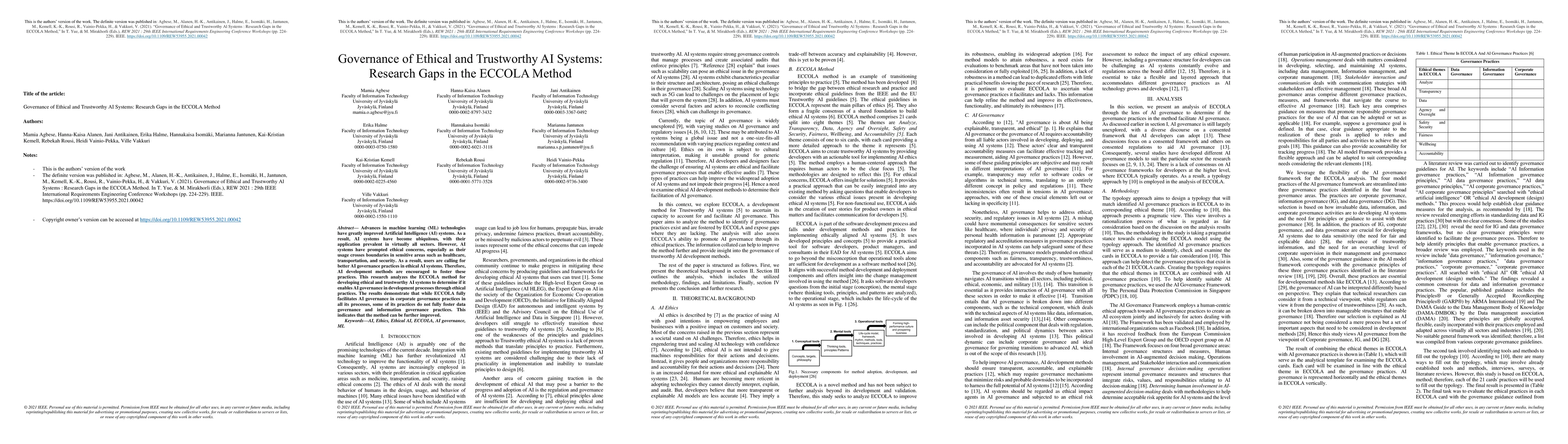 This research is essential for the robustness of ECCOLA, as it evaluates the method concerning AI governance, identifying gaps for improvement and emphasizing the importance of ethical principles in governance practices.