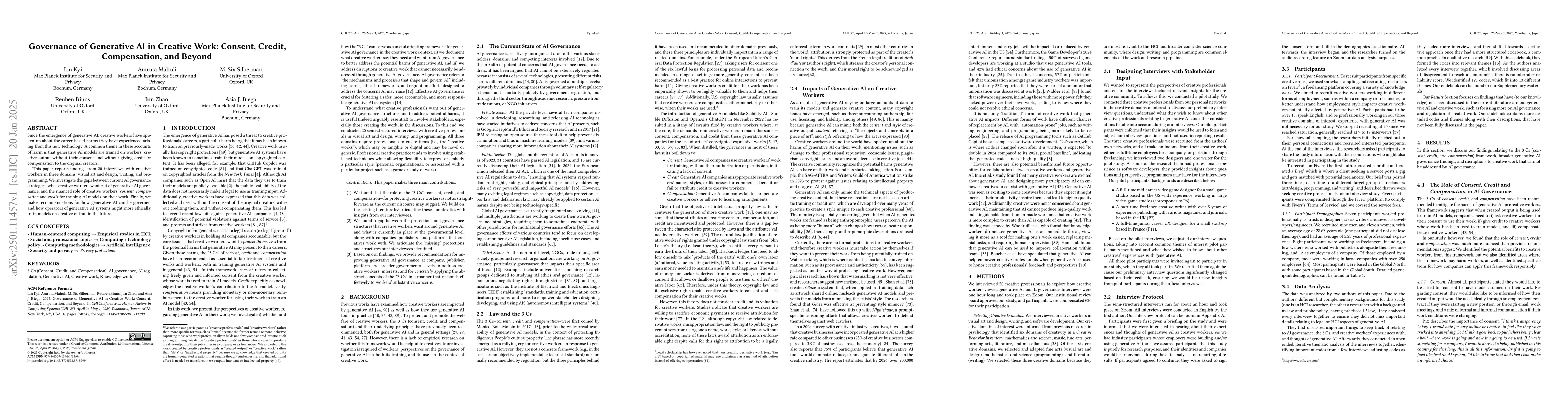 This paper investigates the ethical concerns of creative workers regarding generative AI's use of their output without consent, credit, or compensation. Based on interviews across visual art, writing, and programming, it identifies gaps in current AI governance and proposes recommendations for ethical generative AI training.