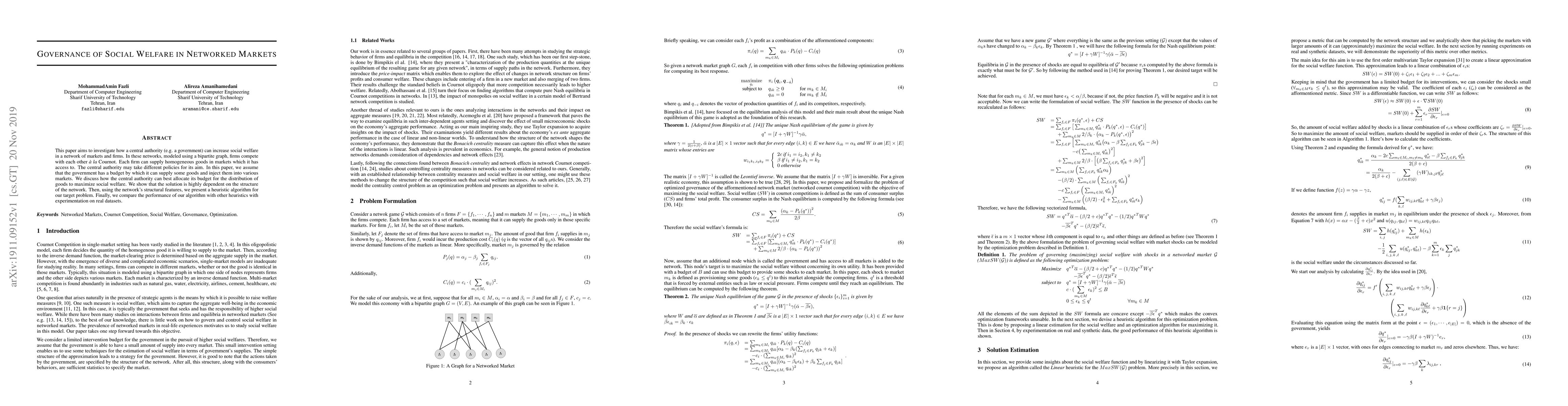 This paper aims to investigate how a central authority (e.g. a government) can increase social welfare in a network of markets and firms. In these networks, modeled using a bipartite graph, firms compete with each other \textit{\`a la} Cournot. Each firm can supply homogeneous goods in markets which it has access to. The central authority may take different policies for its aim. In this paper, we assume that the government has a budget by which it can supply some goods and inject them into various markets. We discuss how the central authority can best allocate its budget for the distribution of goods to maximize social welfare. We show that the solution is highly dependent on the structure of the network. Then, using the network's structural features, we present a heuristic algorithm for our target problem. Finally, we compare the performance of our algorithm with other heuristics with experimentation on real datasets.