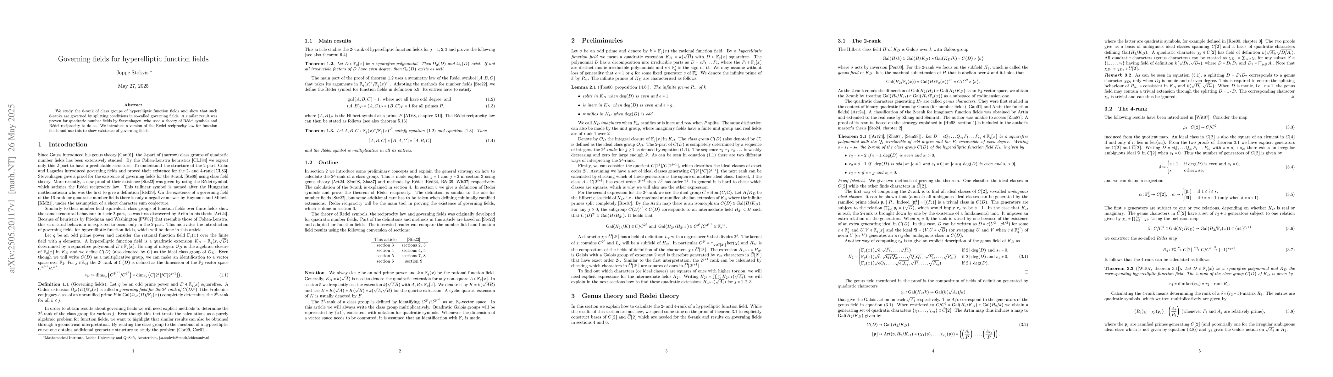 Introduction of a Rédei reciprocity law for function fields and its application to prove the existence of governing fields for hyperelliptic function fields.