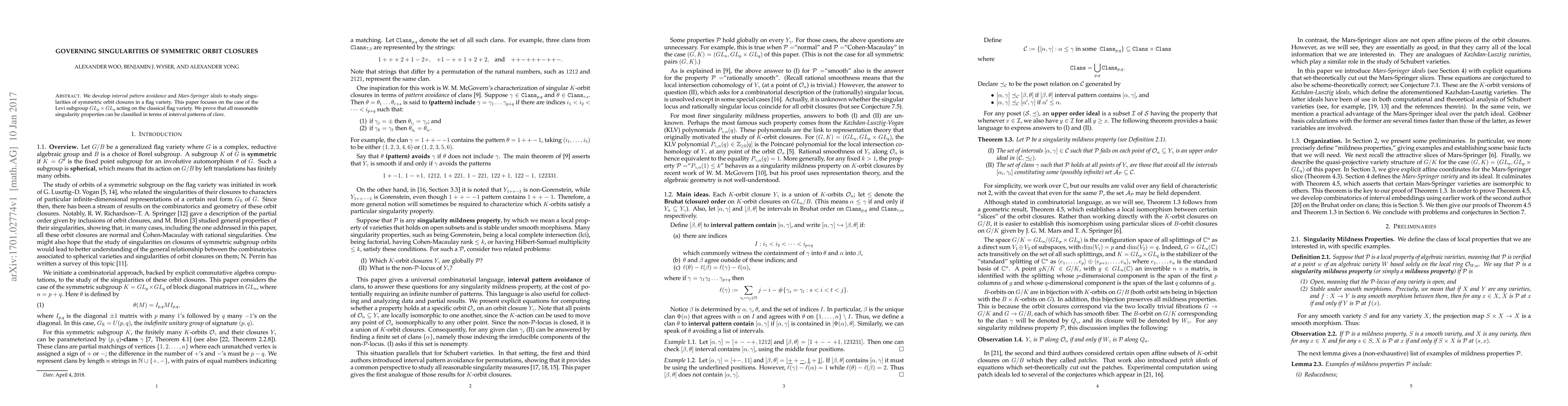 Two-line summary: This paper introduces interval pattern avoidance and Mars-Springer ideals to classify singularities of symmetric orbit closures in a flag variety under the action of the Levi subgroup GL_p x GL_q. The study reveals that all relevant singularity properties can be described in terms of interval patterns of clans.