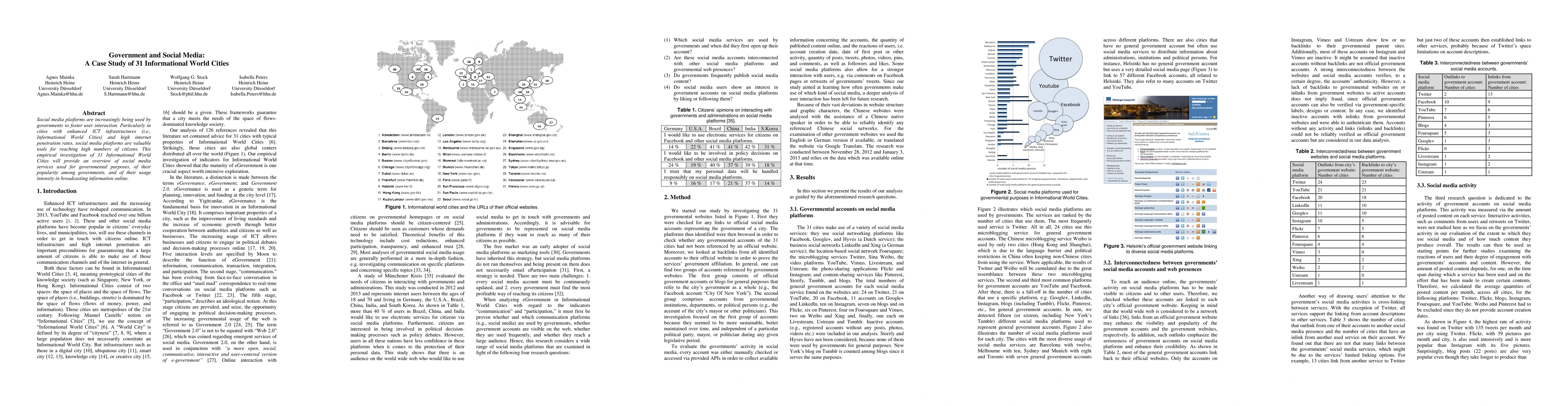 This study examines the use of social media by governments in 31 Informational World Cities, highlighting the platforms employed for governmental interaction and their popularity and intensity in disseminating information. The research aims to provide insights into how cities with advanced ICT infrastructure leverage social media.
