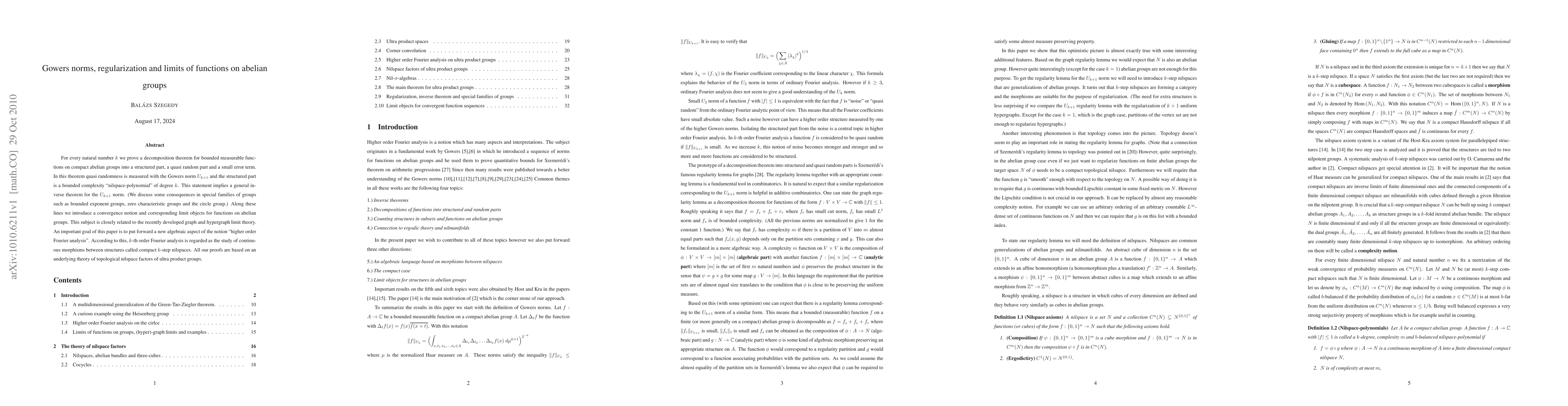 The approach of viewing higher-order Fourier analysis through the lens of continuous morphisms between nilspaces and the introduction of a convergence notion for functions on abelian groups distinguish this work from previous research.