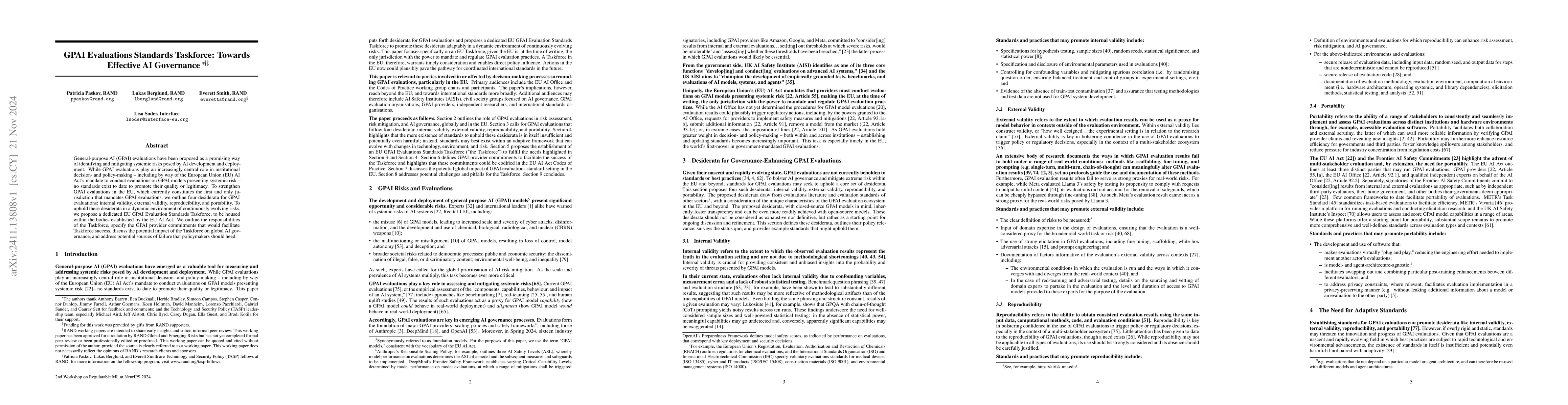 This paper proposes four standards—internal validity, external validity, reproducibility, and portability—to enhance the quality of general-purpose AI (GPAI) evaluations in the EU. It advocates for a dedicated GPAI Evaluation Standards Taskforce within the EU AI Act to uphold these standards and discusses its responsibilities, necessary provider commitments, global governance impact, and potential challenges.