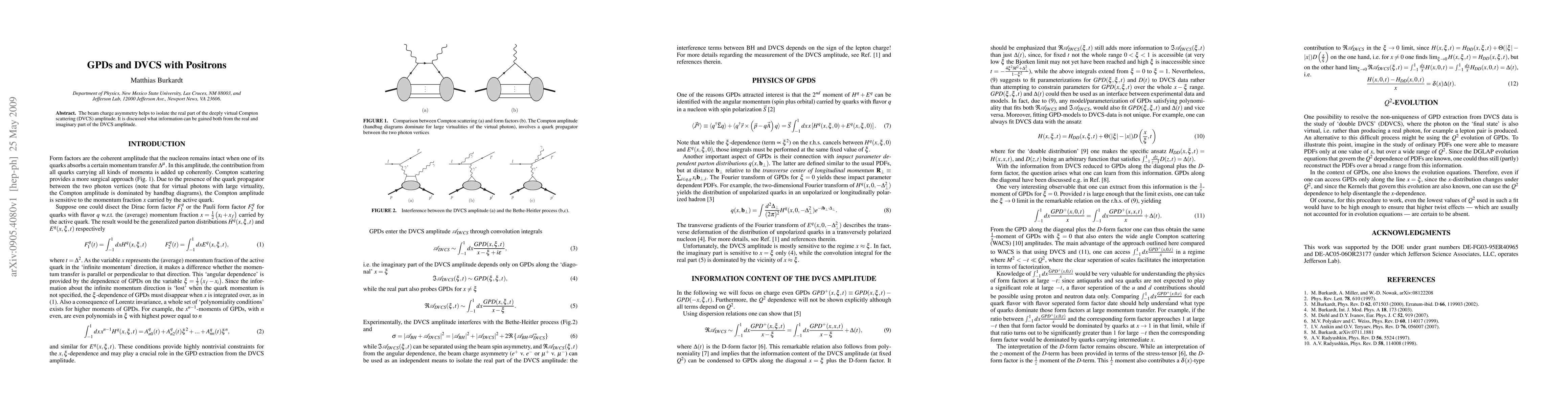 The beam charge asymmetry helps to isolate the real part of the deeply virtual Compton scattering (DVCS) amplitude. It is discussed what information can be gained both from the real and imaginary part of the DVCS amplitude.