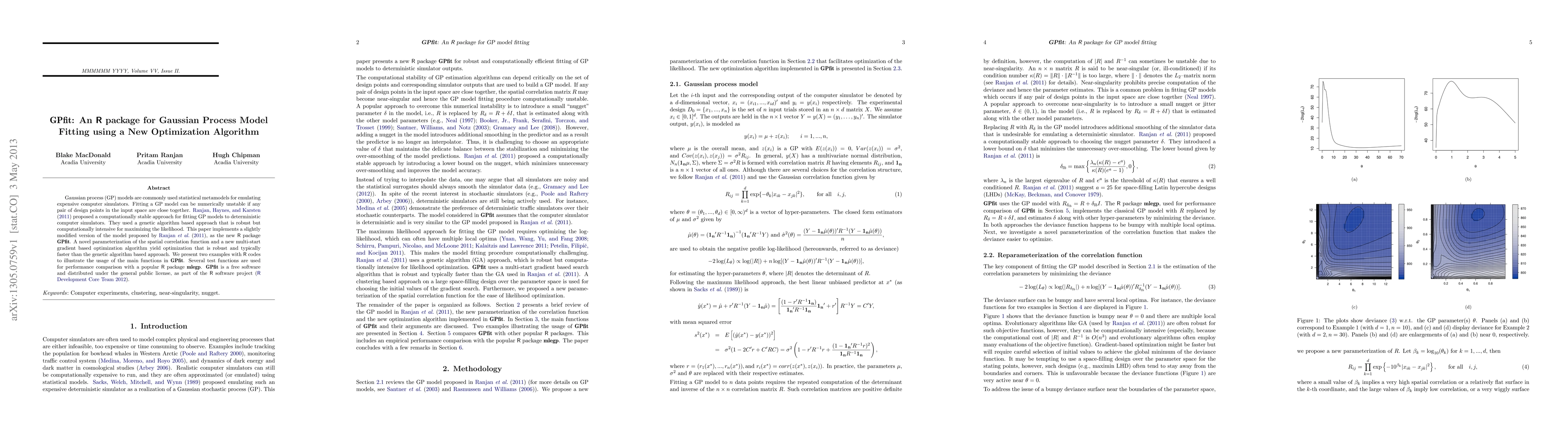 This paper introduces GPfit, an R package for fitting Gaussian Process models using a new optimization algorithm. The package employs a novel parameterization and a multi-start gradient-based optimization, offering improved stability and speed compared to previous genetic algorithm-based methods.