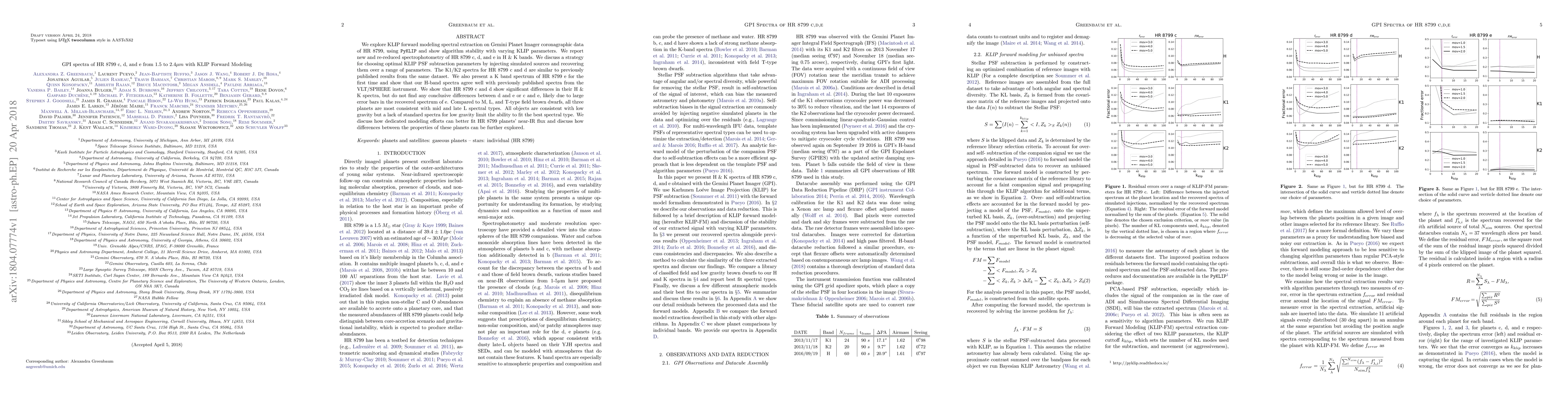 This paper utilizes KLIP forward modeling to analyze Gemini Planet Imager data of HR 8799 c, d, and e, presenting new spectrophotometry in H & K bands. The study finds significant differences in the H & K spectra of HR 8799 c and d, while differences between d and e, or c and e, remain inconclusive due to large error bars.