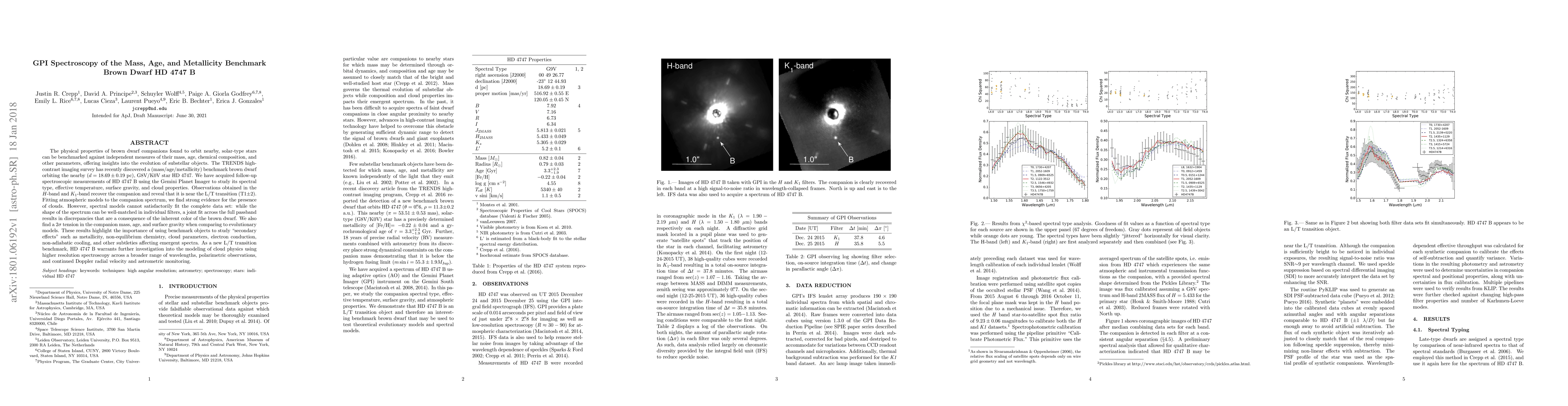 This paper uses GPI spectroscopy to analyze the benchmark brown dwarf HD 4747 B, finding it near the L/T spectral transition and evidence of clouds. Discrepancies in fitting atmospheric models highlight the need for improved modeling of secondary effects in substellar objects.