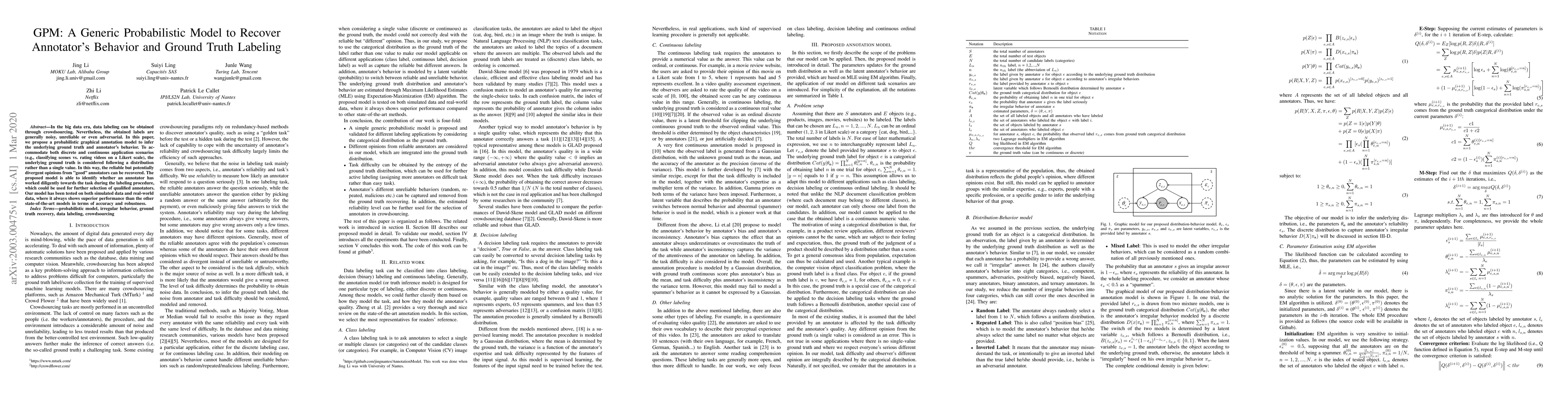 This paper introduces a probabilistic graphical annotation model (GPM) to infer ground truth and annotator behavior in noisy crowdsourced data. It accommodates both discrete and continuous labeling tasks by considering ground truth as a distribution, enabling recovery of reliable annotator opinions. The model also identifies diligent annotators, outperforming other state-of-the-art models in accuracy and robustness.