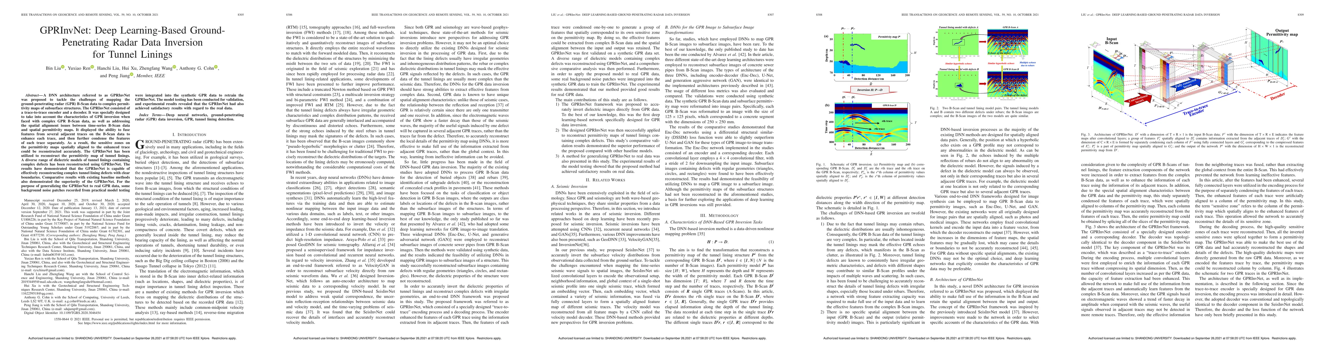 GPRInvNet, a deep learning-based architecture, effectively reconstructs complex permittivity maps of tunnel linings from GPR B-Scan data, demonstrating superior performance compared to existing methods and achieving satisfactory results with real-world data.