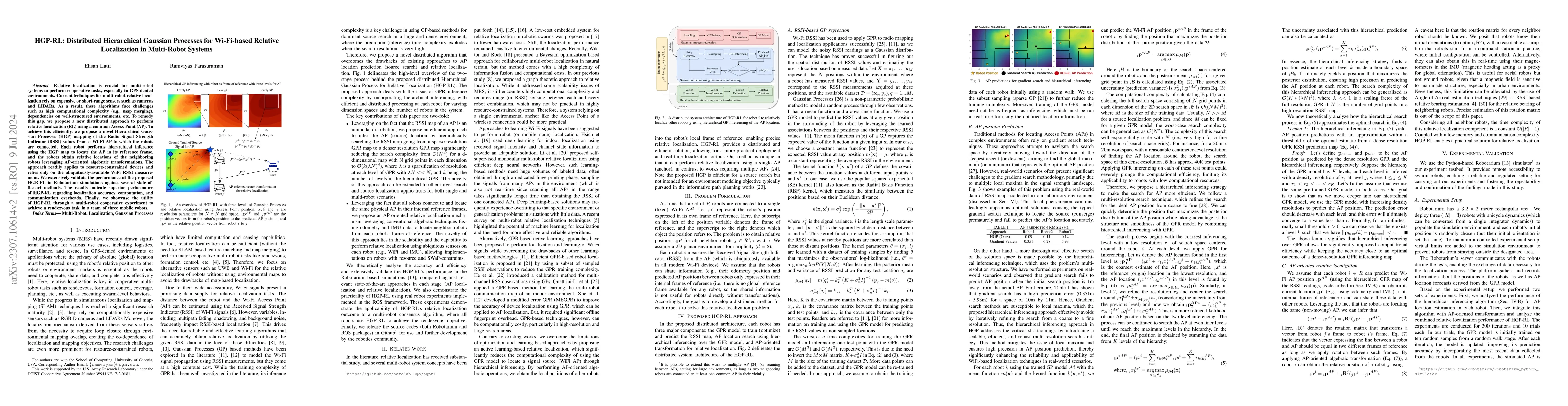 The paper proposes GPRL, a Gaussian Processes-based method for multi-robot relative localization using RSSI from a single wireless AP, reducing computational complexity and environmental dependencies. GPRL's hierarchical inferencing and AP-oriented vector transformation outperform existing techniques in simulations and real-world multi-robot tasks.