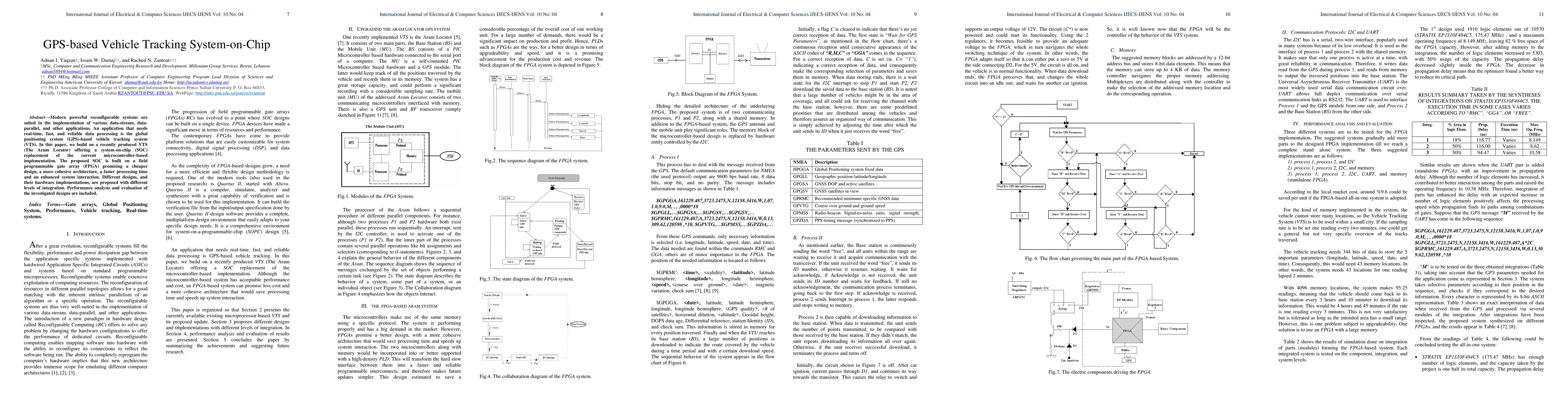 A new GPS-based vehicle tracking system-on-chip is proposed, offering faster processing times and improved system interaction through the use of a field programmable gate array (FPGA), replacing traditional microcontroller-based designs.