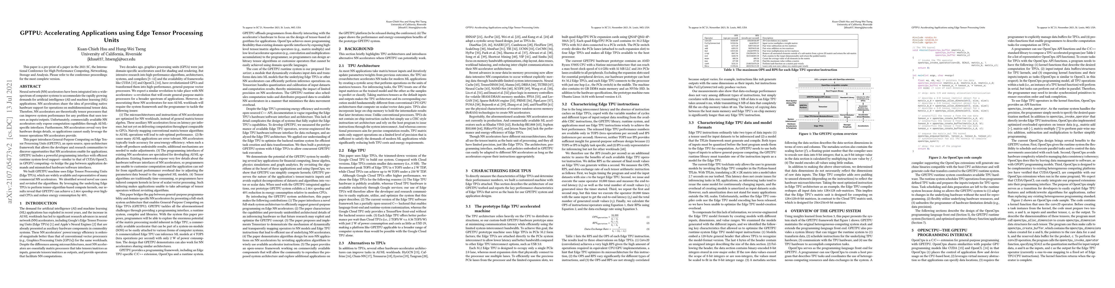 GPTPU accelerates AI applications using edge tensor processing units, achieving a 2.46x speedup over CPUs and reducing energy consumption by 40%.