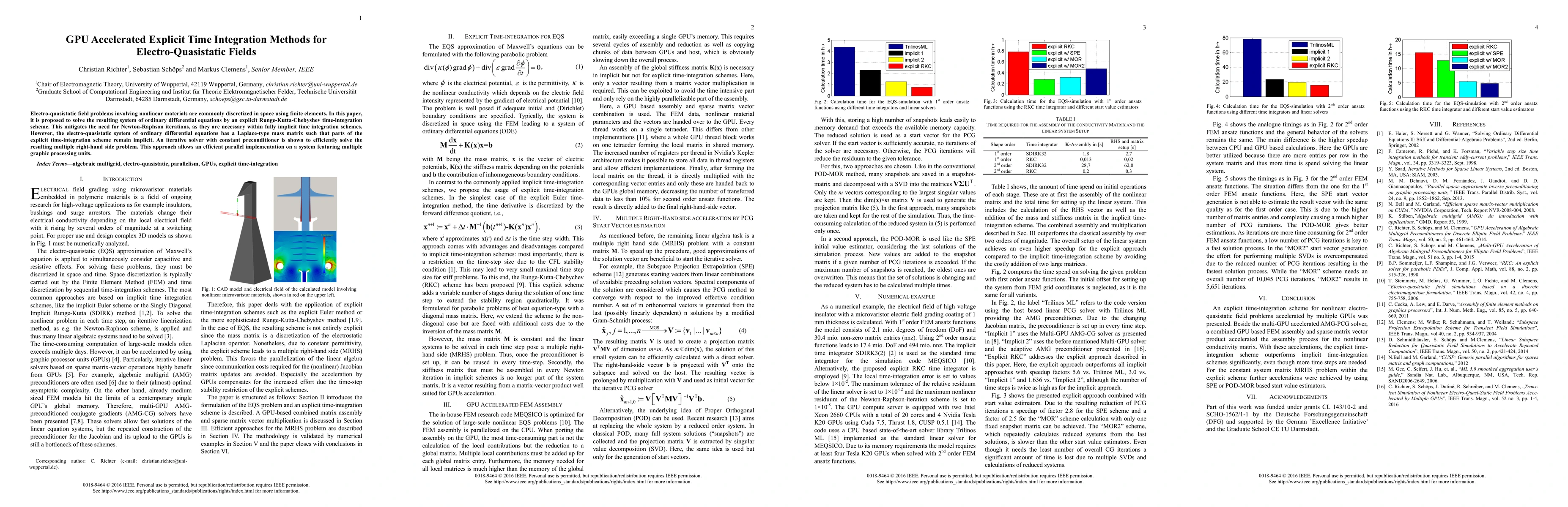 This paper proposes an explicit Runge-Kutta-Chebyshev time-integration scheme for solving electro-quasistatic field problems with nonlinear materials, reducing the need for Newton-Raphson iterations. An iterative solver with a constant preconditioner efficiently handles the implicit parts of the scheme, enabling efficient parallel computation on GPU systems.