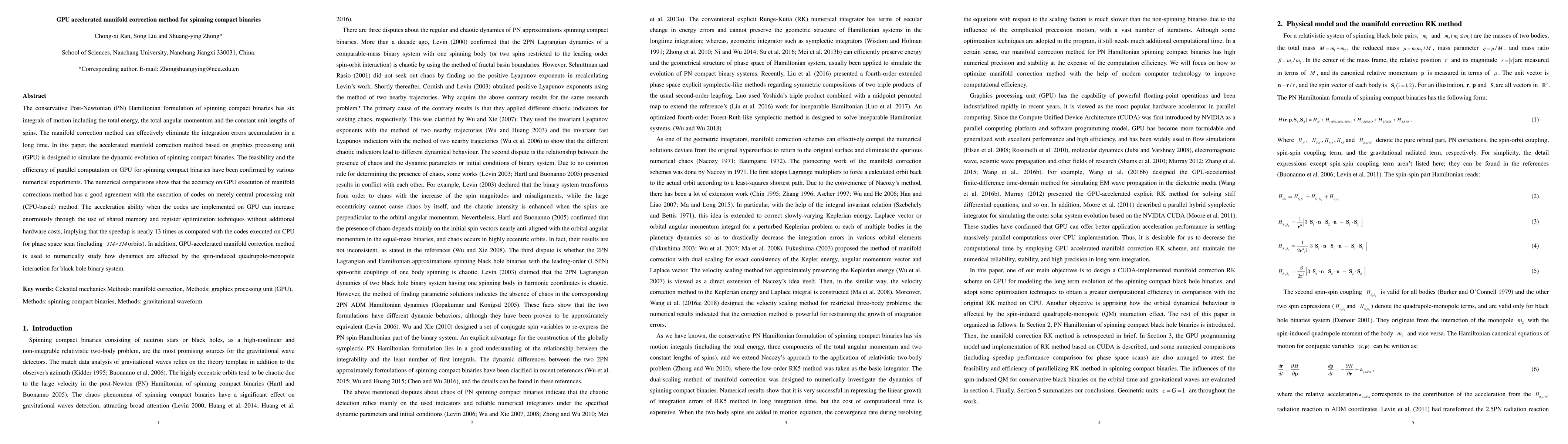 This paper presents a GPU-accelerated manifold correction method for simulating the dynamic evolution of spinning compact binaries, achieving significant speedups (nearly 13 times) compared to CPU-based methods through parallel computation and optimization techniques. The method maintains accuracy and is used to study spin-induced interactions in black hole binaries.
