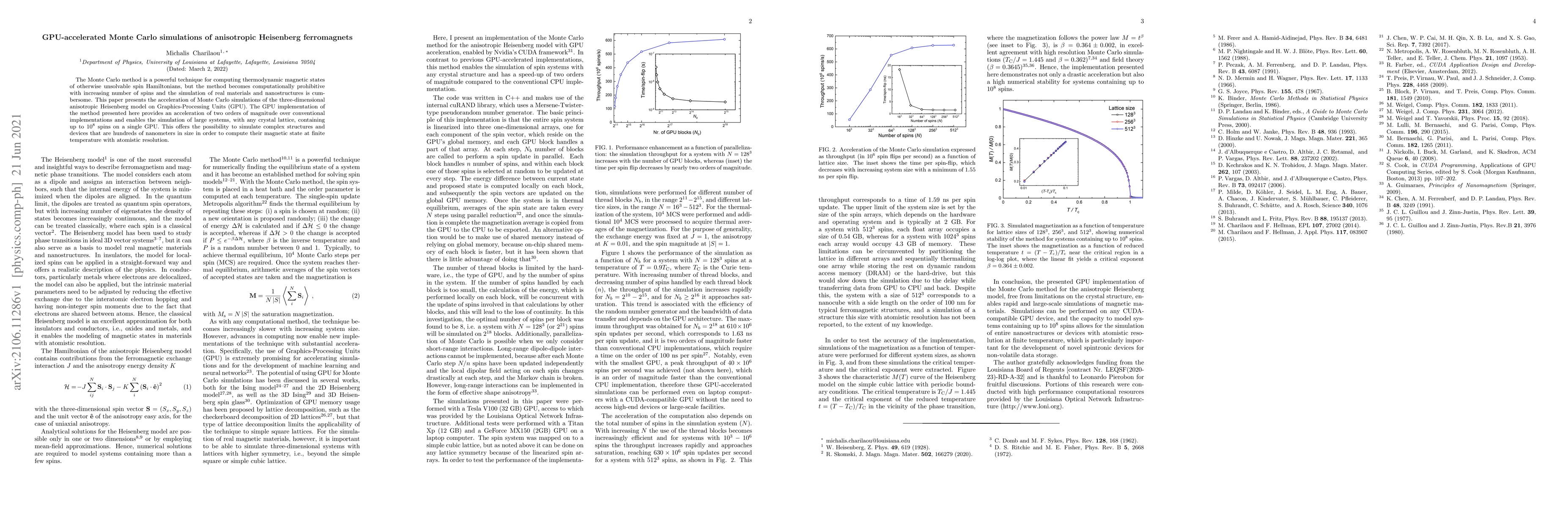 This paper presents a GPU-accelerated Monte Carlo method for simulating the three-dimensional anisotropic Heisenberg ferromagnet, achieving a two-order-of-magnitude speedup over conventional methods, enabling the simulation of large systems with up to $10^8$ spins and complex nanostructures.