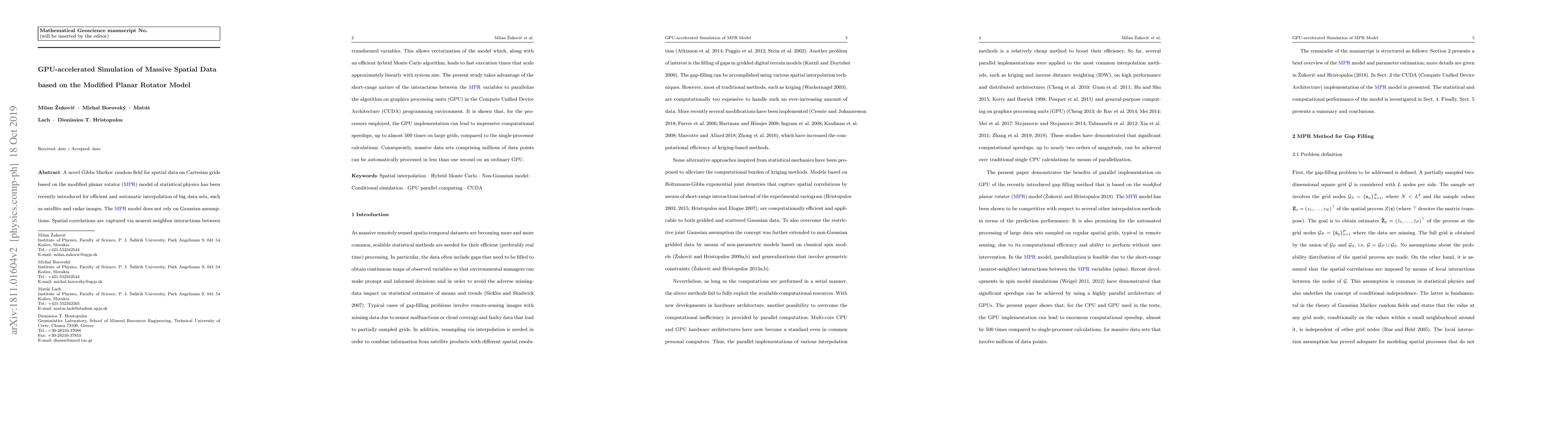 A new method for simulating large spatial data using a GPU-accelerated version of the modified planar rotator model offers significant computational speedups, allowing massive datasets to be processed in under 1 second on an ordinary GPU.