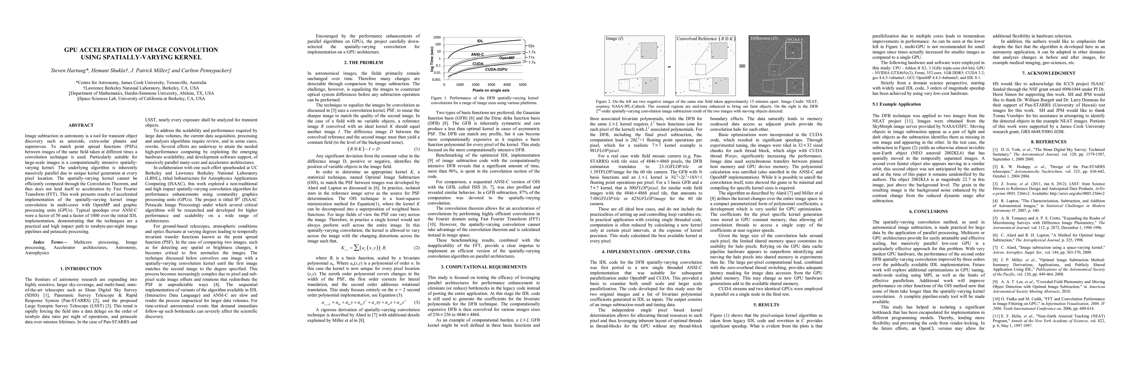 Researchers accelerated image convolution using a spatially-varying kernel on GPUs, achieving 50-1000x speedups over the original implementation, enabling large-scale astronomy projects.