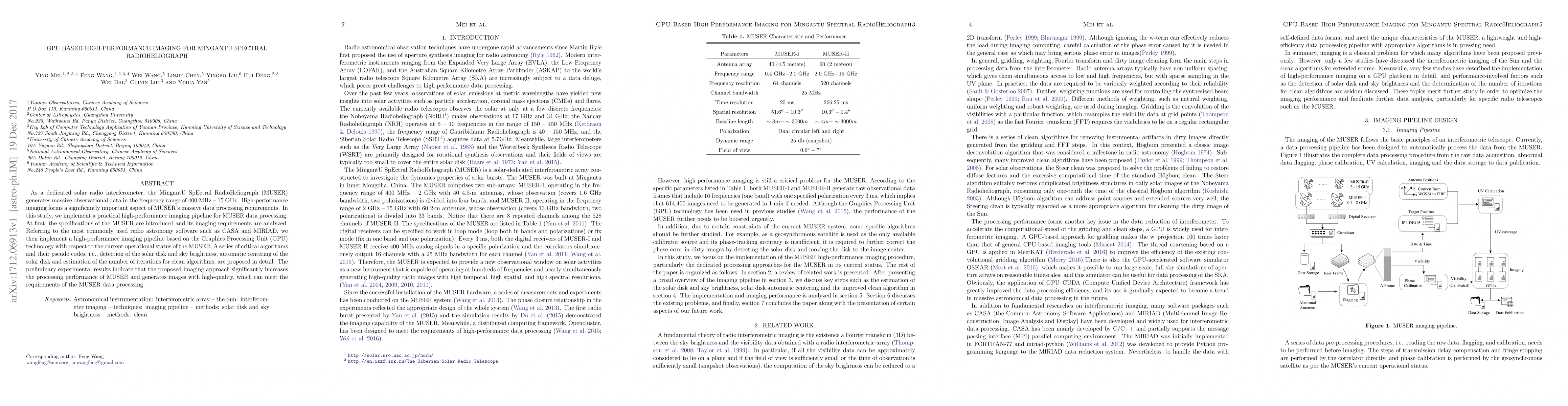 This study develops a GPU-based high-performance imaging pipeline for the Mingantu Spectral RadioHeliograph (MUSER), which processes vast solar radio data. The implemented pipeline, leveraging GPU technology, significantly enhances data processing speed and produces high-quality imaging results.