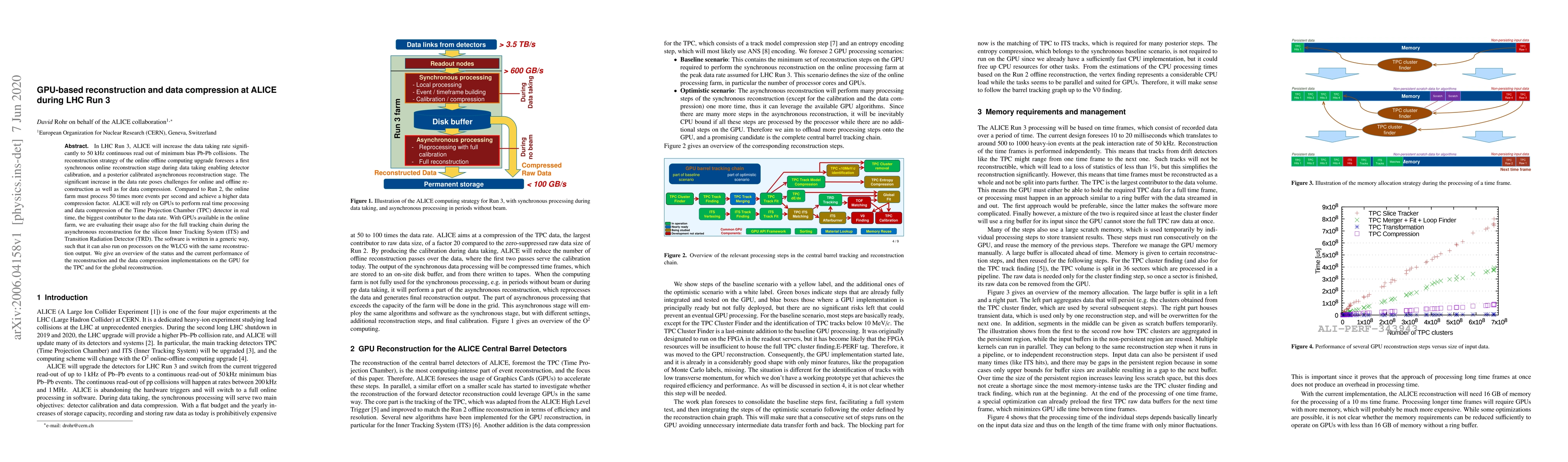 This paper discusses ALICE's approach to handling significantly increased data rates during LHC Run 3 using GPUs for real-time processing and data compression of the Time Projection Chamber (TPC) detector. It also evaluates the potential of GPUs for asynchronous reconstruction of the silicon Inner Tracking System (ITS) and Transition Radiation Detector (TRD).