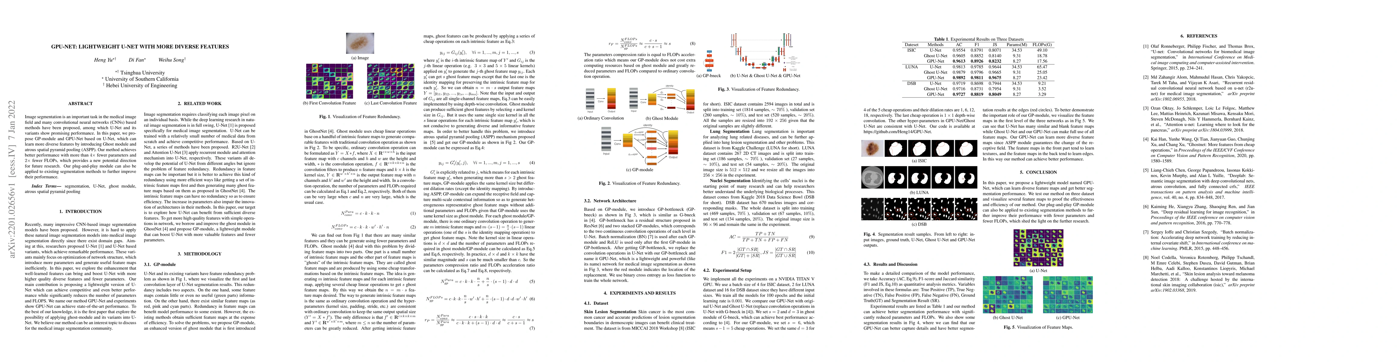 This paper proposes GPU-Net, a lightweight U-Net variant incorporating GP-module and ASPP to enhance feature diversity, achieving superior performance with significantly fewer parameters and computational costs. The introduced Ghost module and ASPP can also augment existing segmentation methods.