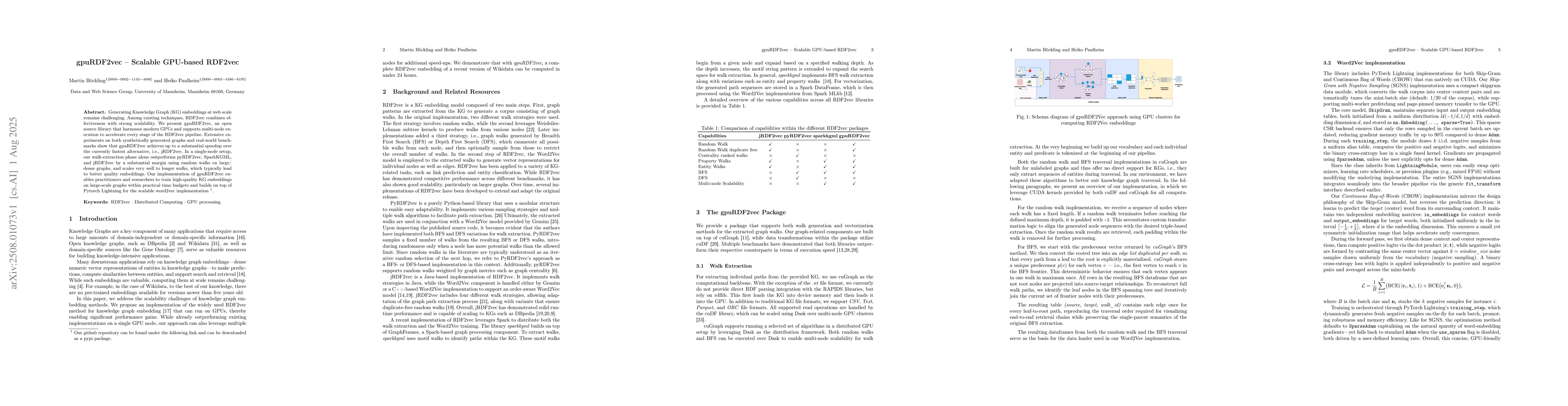 Generating Knowledge Graph (KG) embeddings at web scale remains challenging. Among existing techniques, RDF2vec combines effectiveness with strong scalability. We present gpuRDF2vec, an open source library that harnesses modern GPUs and supports multi-node execution to accelerate every stage of the RDF2vec pipeline. Extensive experiments on both synthetically generated graphs and real-world benchmarks show that gpuRDF2vec achieves up to a substantial speedup over the currently fastest alternative, i.e., jRDF2vec. In a single-node setup, our walk-extraction phase alone outperforms pyRDF2vec, SparkKGML, and jRDF2vec by a substantial margin using random walks on large/ dense graphs, and scales very well to longer walks, which typically lead to better quality embeddings. Our implementation of gpuRDF2vec enables practitioners and researchers to train high-quality KG embeddings on large-scale graphs within practical time budgets and builds on top of Pytorch Lightning for the scalable word2vec implementation.