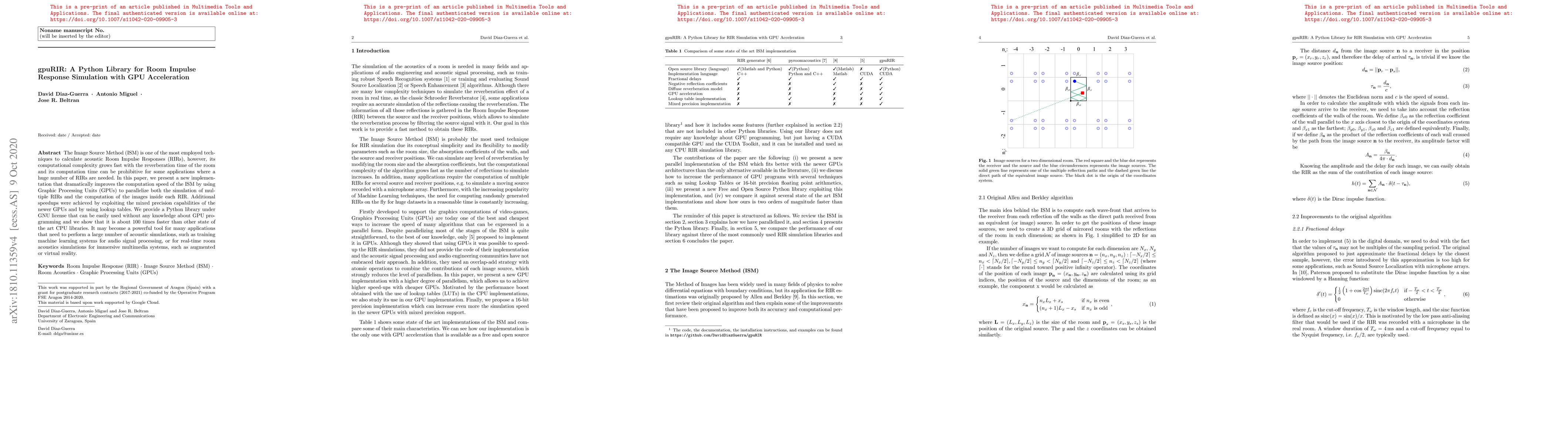 The paper introduces a new GPU-accelerated Python library, gpuRIR, for efficiently simulating Room Impulse Responses using the Image Source Method. It achieves significant speedups by leveraging GPU parallelization and mixed precision, making it about 100 times faster than traditional CPU-based methods, suitable for applications requiring large-scale acoustic simulations.