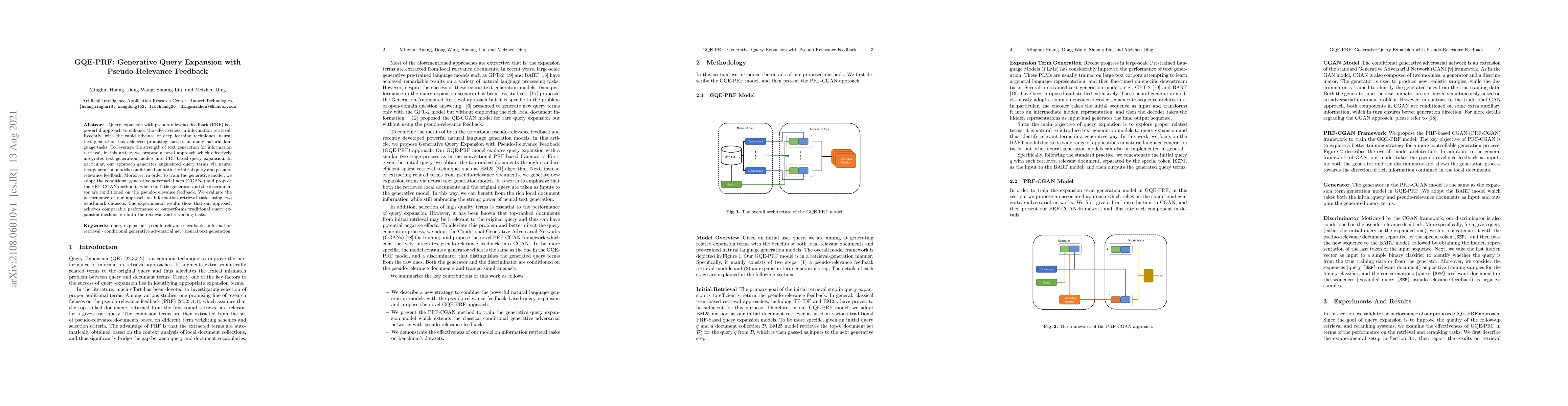 This paper proposes GQE-PRF, a novel approach that integrates neural text generation models into pseudo-relevance feedback (PRF)-based query expansion using conditional generative adversarial networks (CGANs) to generate improved query terms, achieving comparable or superior performance over traditional methods in information retrieval tasks.