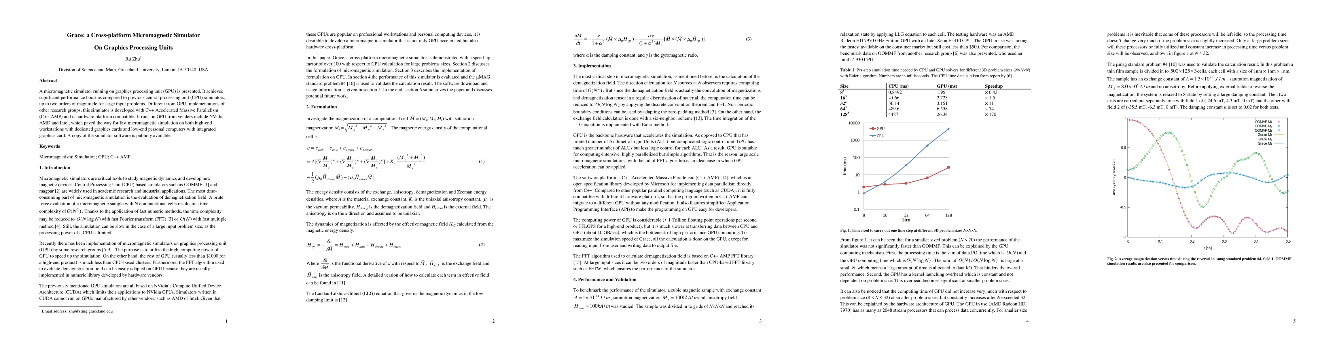 This paper introduces Grace, a cross-platform micromagnetic simulator utilizing GPU for significant performance improvements over CPU-based simulators, achieving up to two orders of magnitude speedup for large problems. It employs C++ AMP for compatibility across various GPU vendors, making it accessible for both high-end and low-end computing systems.