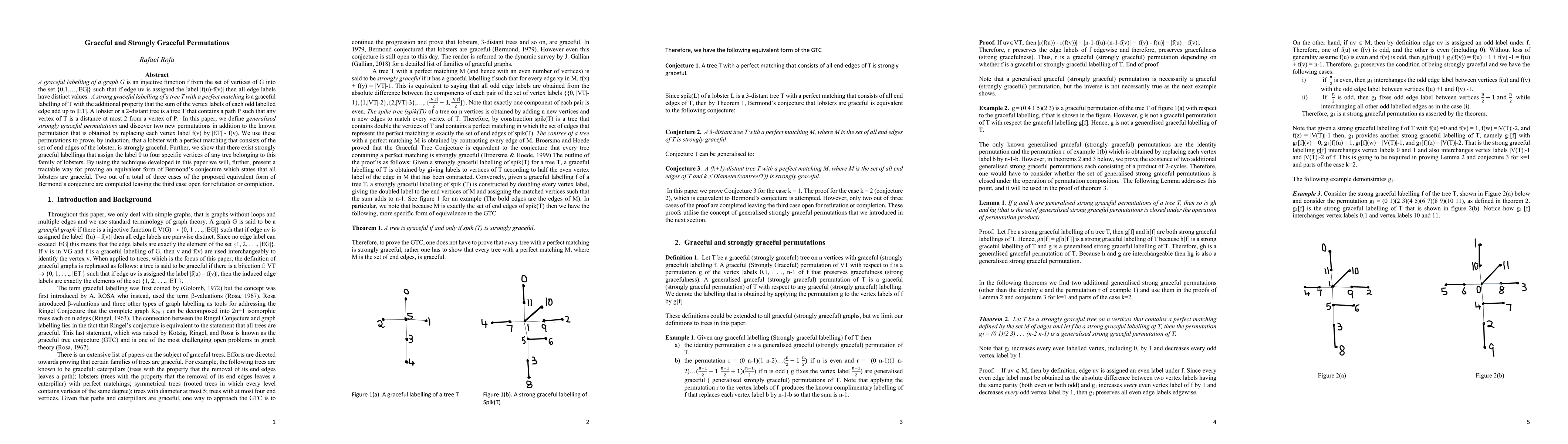 This paper introduces generalised strongly graceful permutations and proves that lobsters with a perfect matching of end edges are strongly graceful. It also demonstrates the existence of labellings assigning label 0 to four specific vertices in these trees, and presents a method for proving an equivalent form of Bermond's conjecture, completing two of three cases.