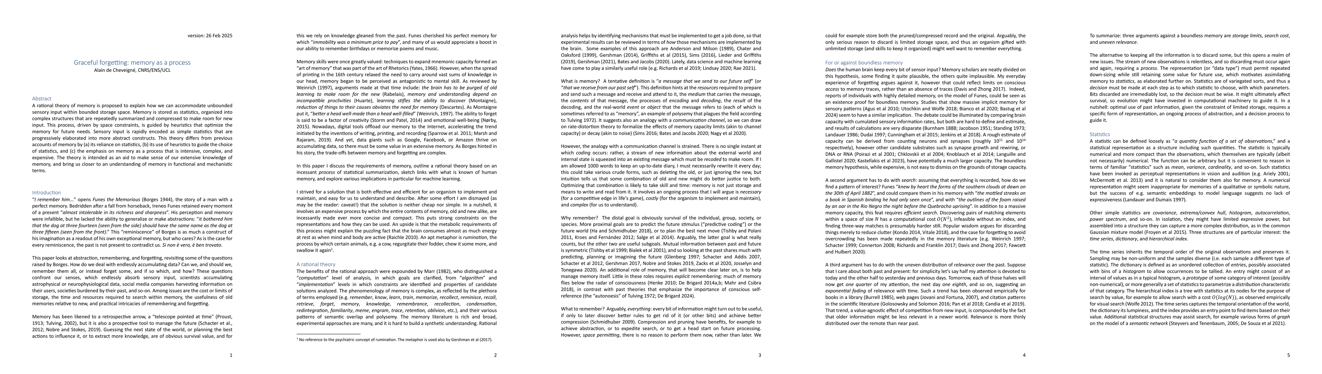 The paper proposes a rational theory of memory based on statistics, heuristics, and a process of continuous summarization to accommodate unbounded sensory input within bounded storage space.