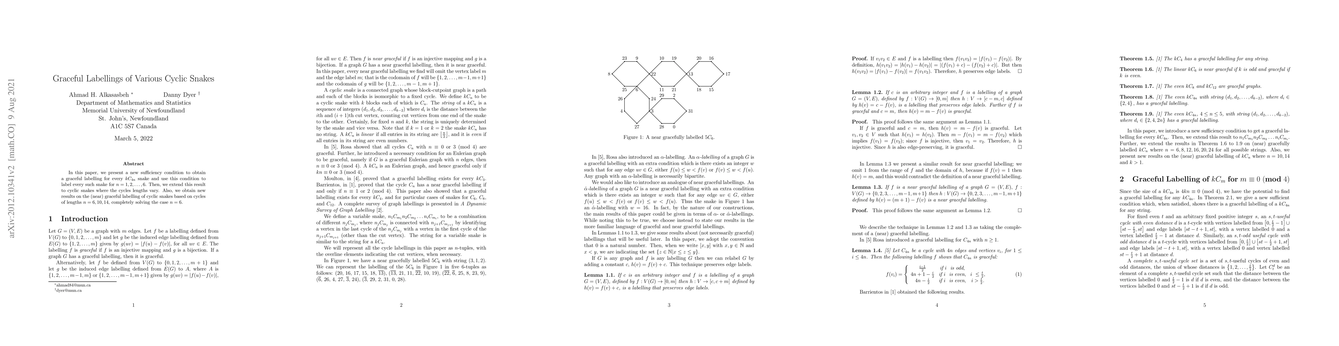 In this paper, we present a new sufficiency condition to obtain a graceful labelling for every $kC_{4n}$ snake and use this condition to label every such snake for $n=1,2,\ldots,6$. Then, we extend this result to cyclic snakes where the cycles lengths vary. Also, we obtain new results on the (near) graceful labelling of cyclic snakes based on cycles of lengths $n=6, 10, 14$, completely solving the case $n=6$.